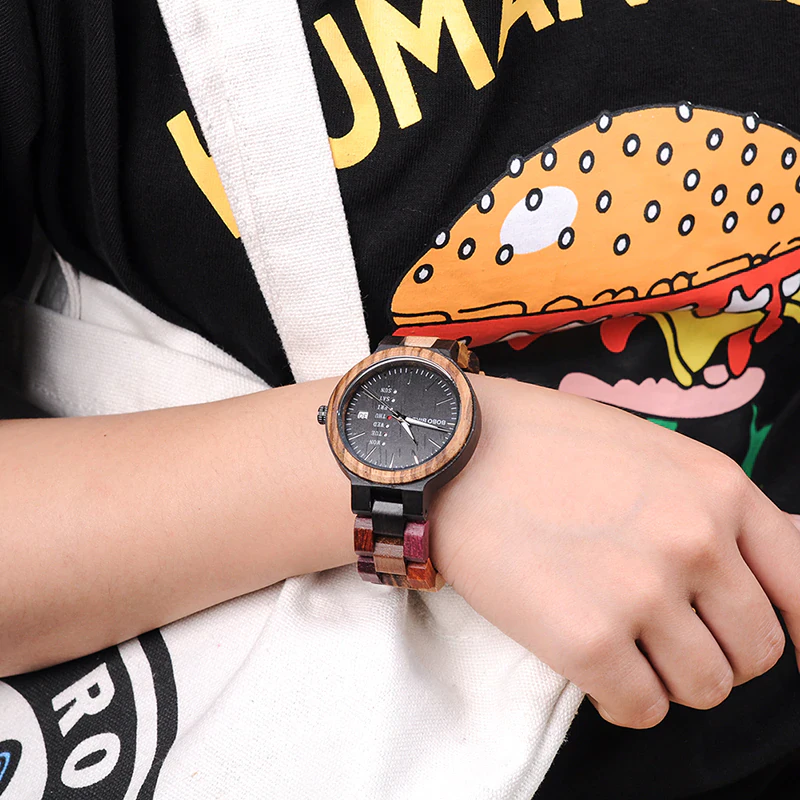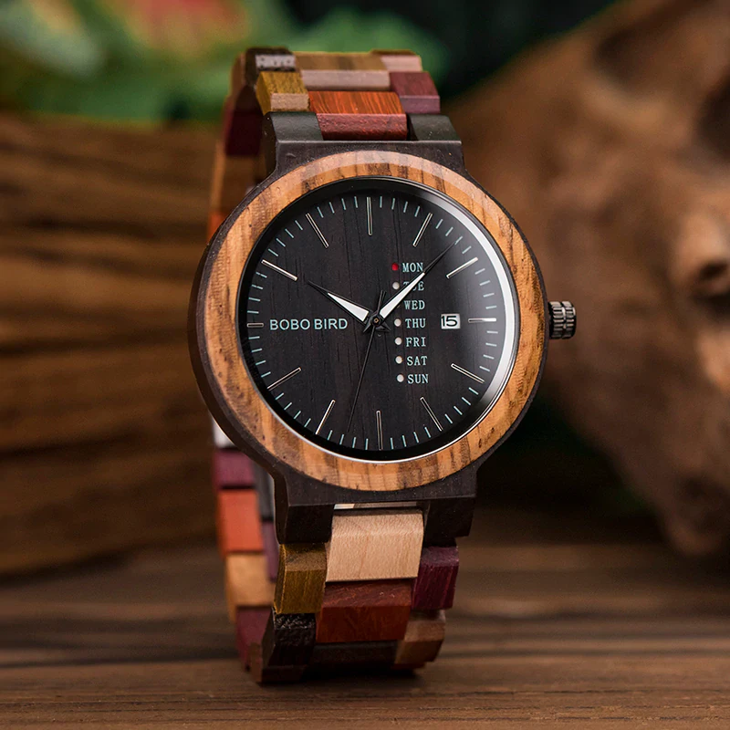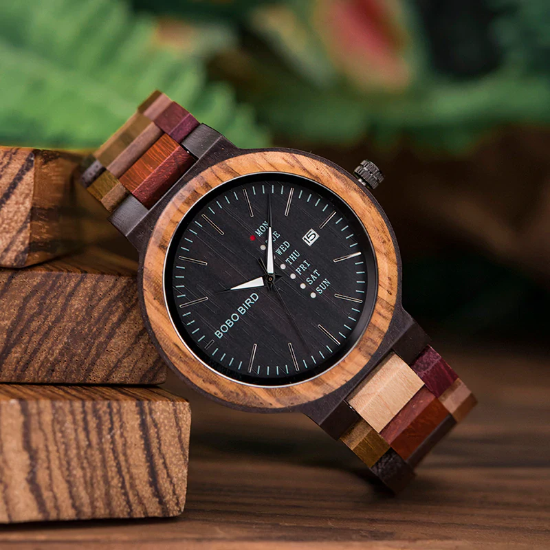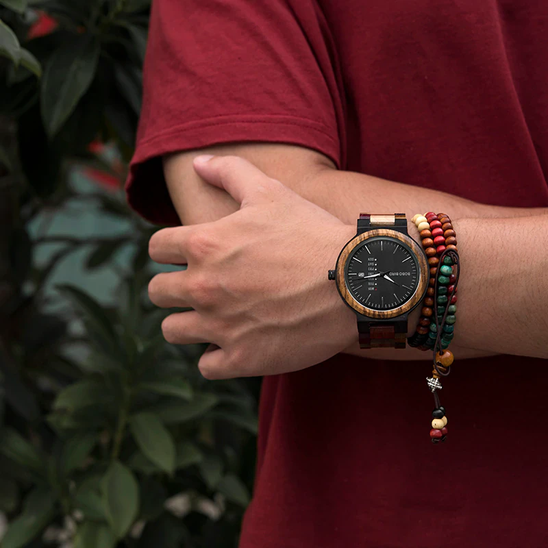 Keep track of your day with this stylish and sustainable timepiece made from natural bamboo. With a diameter of 44mm and a band width of 23mm, this watch is perfect for any man who wants to make a statement. The bamboo material is strong and eco-friendly, and the quartz movement ensures accurate timekeeping. Whether you're dressing up for a special occasion or just want to add a touch of luxury to your everyday look, this modern bamboo watch is a stylish choice.