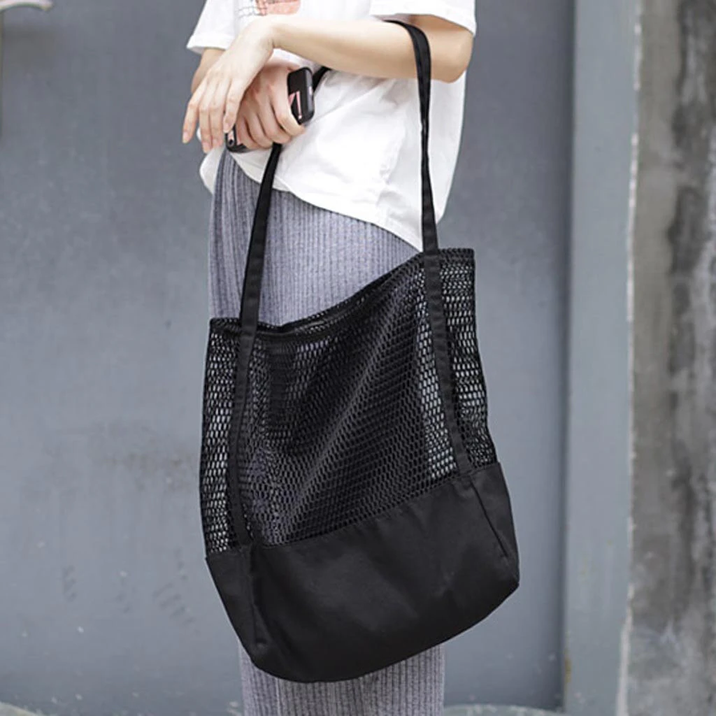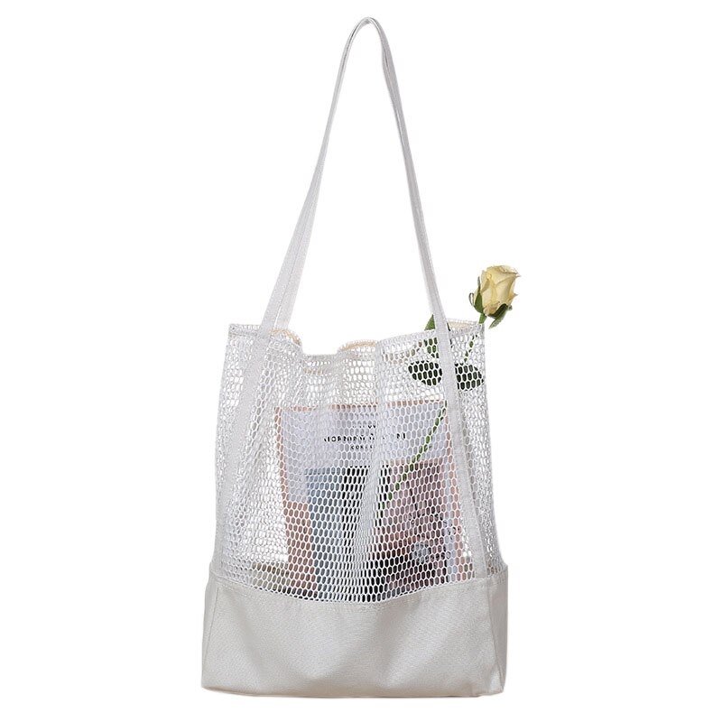 No longer do you have to juggle your beach gear. The 40x40cm capacity makes this bag perfect for the beach - to carry towels, swimwear and other belongings for you. The mesh fabric makes it easy to see the contents, helping you to remember to bring home your favourite hat from the beach. The bag has two straps sewn on, for easy one-shoulder carrying.