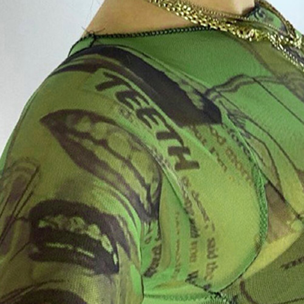 Upgrade your weekend wardrobe with this graphic mesh crop top. Wear alone or layer underneath your favourite tee and pair with baggy jeans or a high waisted skirt for an effortless standout 'fit.