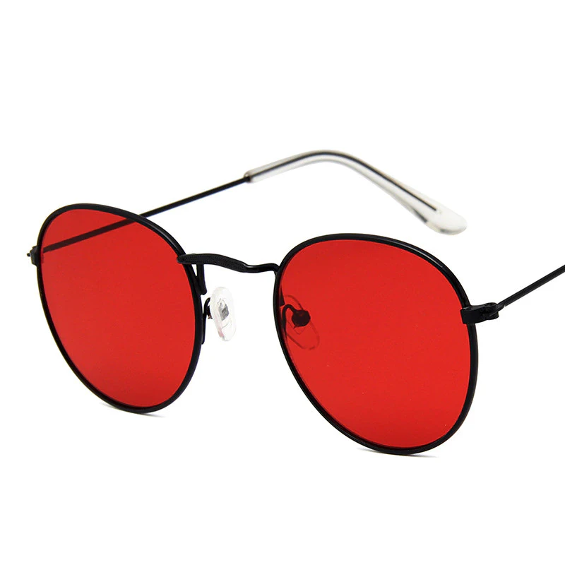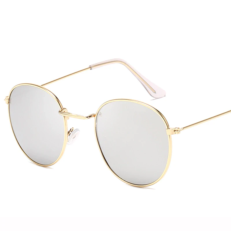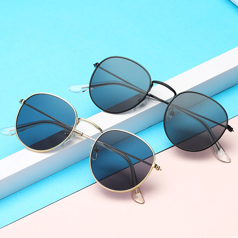 A modern take on a classic eyewear design. These rounded glasses are a staple and a perfect addition to anyone's wardrobe. Constructed with an alloy frame and acrylic for the lenses. The temples are coated with plastic, so they comfortably fit on your ears. The lenses are shaded, mirrored and rated UV400. These glasses are perfect for those summer adventures or beach trips.