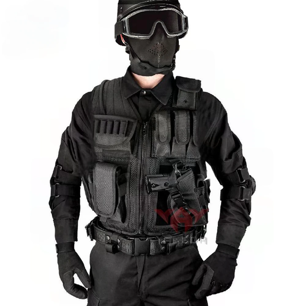 The Military Tactical Vest is a must-have for any outdoor enthusiast or professional seeking reliable gear. Crafted from lightweight 1000D polyester fabric, this vest offers exceptional durability without weighing you down. The rubber grip shoulder shooting pad ensures accurate and comfortable shots, while the shotgun shell holder conveniently keeps your ammunition within arm's reach. With a utility pouch, magazine pouches, radio/phone pouch, and holster, you'll have all your essential items organized and easily accessible. The adjustable belt allows for a customized fit, ensuring maximum comfort during long hours of wear. Choose from a range of colors to match your personal style. Whether you're a hunter, a paintball enthusiast, or involved in law enforcement, this Military Tactical Vest guarantees top-notch performance and reliability.