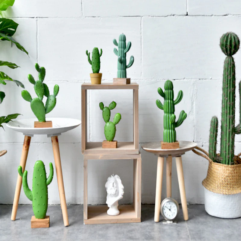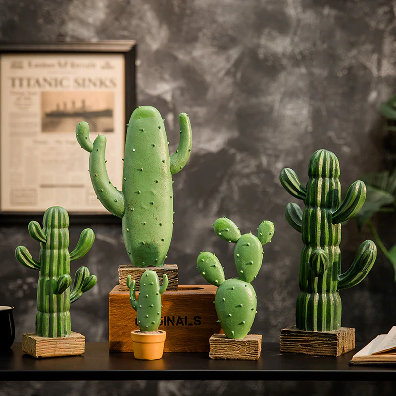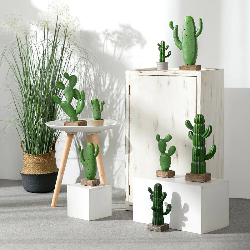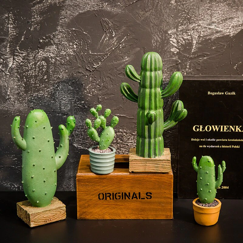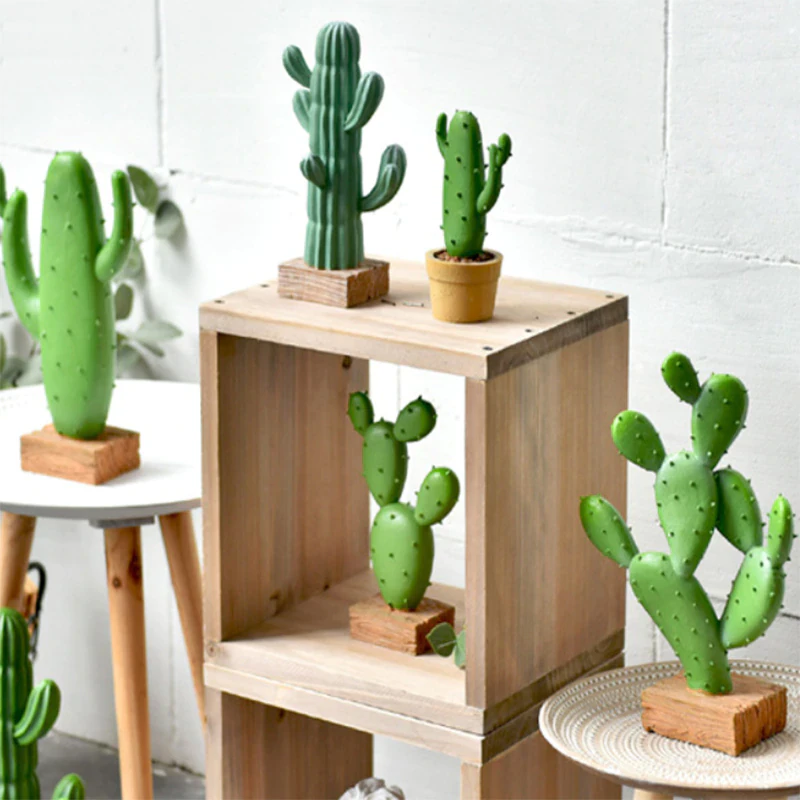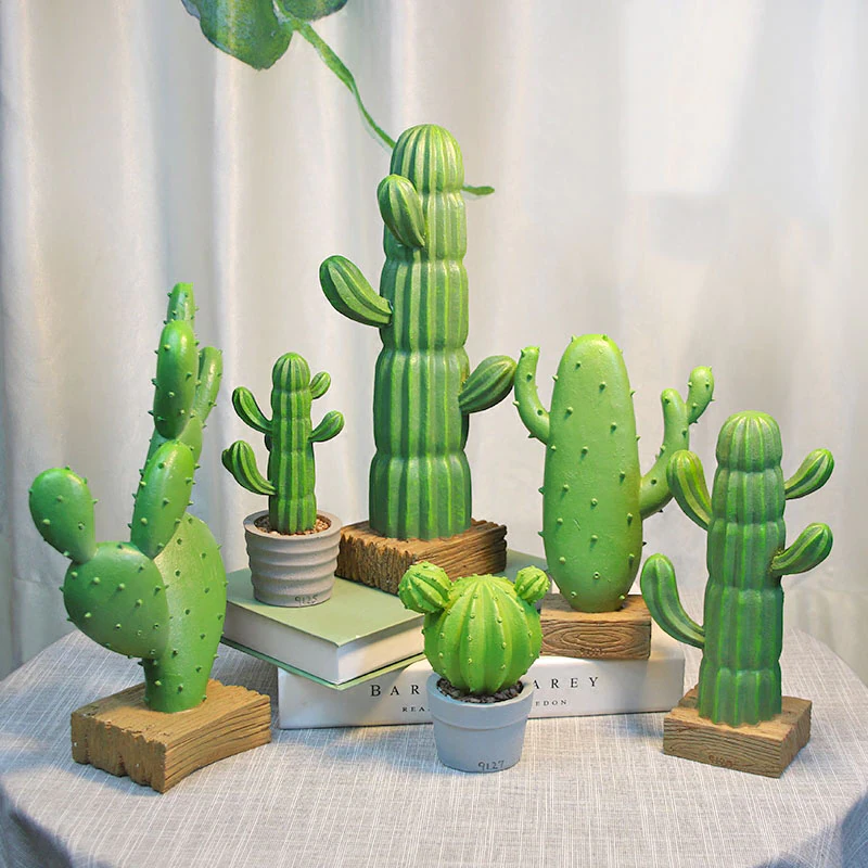 Sometimes a mini cactus is just what you need to add a little flair to your desk or table. This cactus figurine is designed to provide a lifelike simulation of the prickly desert plant, complete with an earthy green hue and spiky textured branches. This little guy is great for both decoration and adding a touch of nature wherever you go!