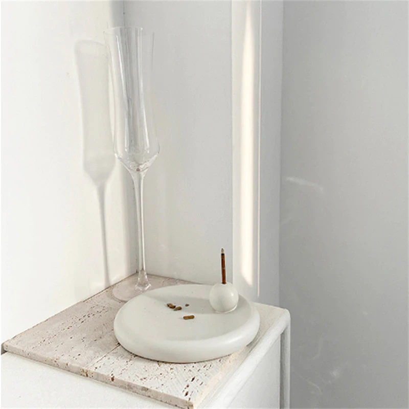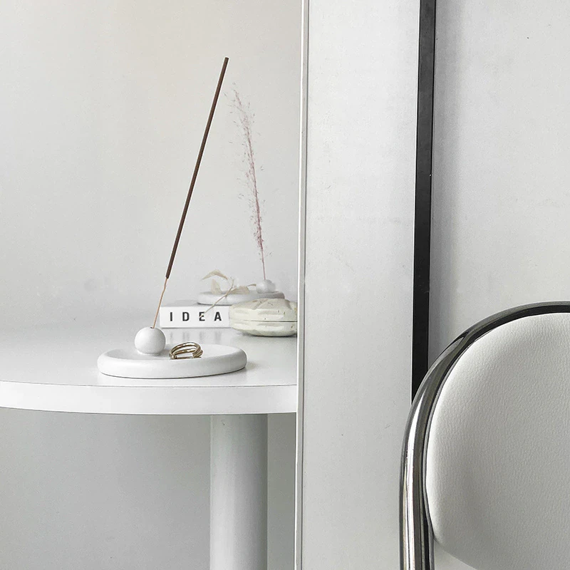 Bring the Nordic aesthetic to your home with our Minimal Ceramic Incense Holder. A beautiful white ceramic piece with a round, white plate design, this set comes complete with everything you need to enjoy the fragrance of incense. The accompanying ceramic dish sits easily below the incense to catch ashes and burn-by debris so you can enjoy this timeless ritual worry-free. Place it on your fireplace mantel or coffee table for an instant touch of Nordic décor!