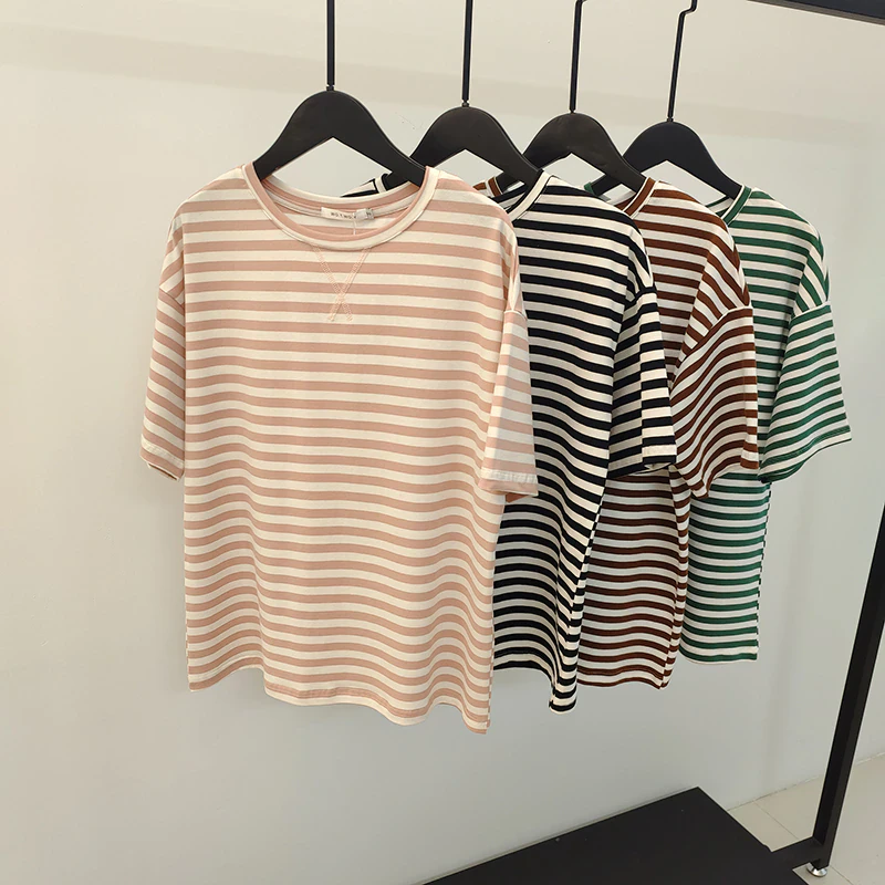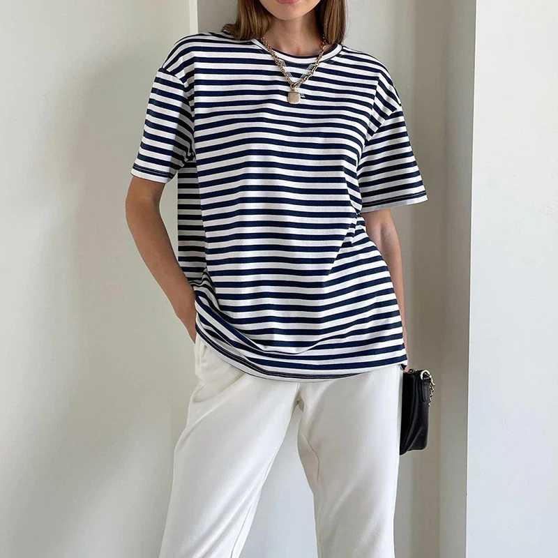 A versatile staple for your wardrobe, this minimal striped tee is great for all seasons. Made from soft cotton with a striped print and available in a range of colours.