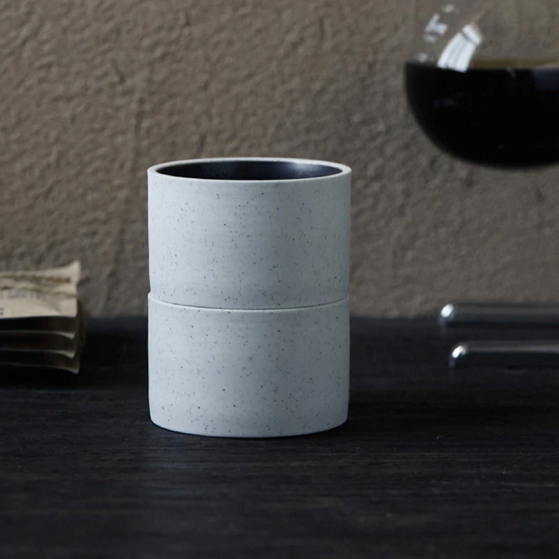 Made from ceramic with a speckled finish on the outside and black coating inside, this super minimal mug opts to go handle free, because who needs one of those?