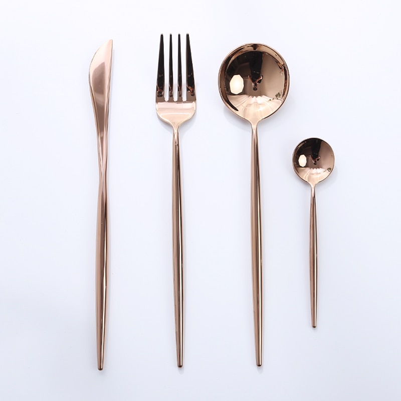 This stunning mirror gold cutlery set is a must have addition to any formal dining experience. Crafted from high quality 304 stainless steel, each piece is made to last and maintain its shine. Each set includes all the silverware you need for one person, making it an ideal gift or a treat for yourself. The sleek and stylish design will elevate any table setting and add a touch of luxury to any occasion. Whether you're hosting a dinner party or enjoying a meal with your loved ones, this mirror gold cutlery set is sure to impress.