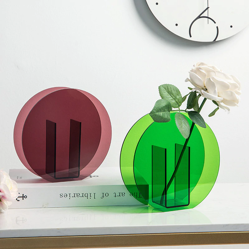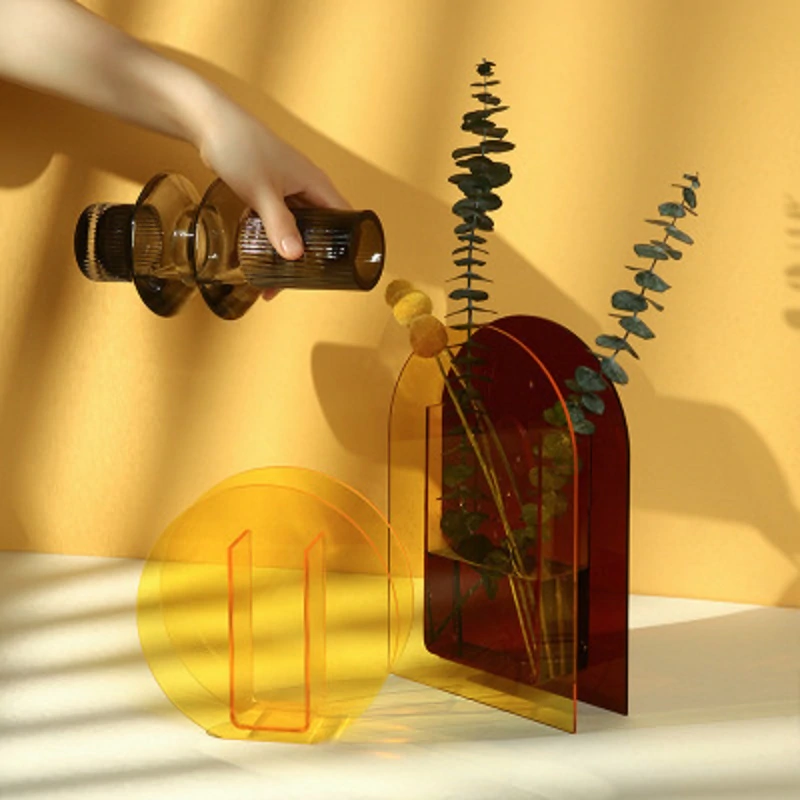 Add a pop of color and stylish design to your home decor with this modern acrylic glass vase. Crafted from high-quality acrylic, this vase is not only durable but also provides a sleek and contemporary look. Whether you're showcasing a stunning bouquet or simple arrangement, this vase is a chic addition to your home.