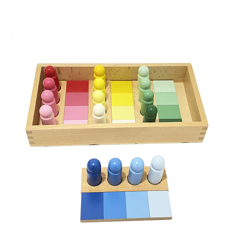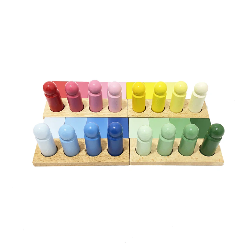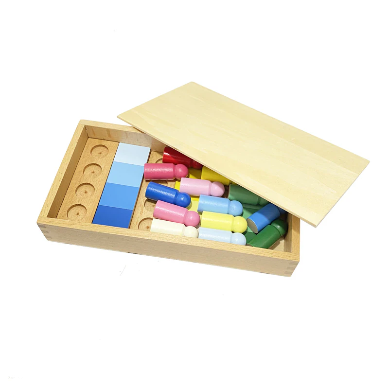 This montessori sorting toy is a matching and sorting game designed to promote concentration, perseverance, independence and problem solving. Made from durable and non-toxic wood, this sorting toy set includes 4 colour boards, 4 peg hole boards and 16 colour rods that fit into a wooden box for both storage and play.