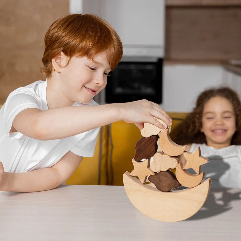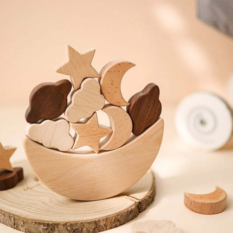 Hands on, self directed play and learning is essential for all children. These space inspired stacking blocks made from wood allow children to exercise their logical thinking ability and observation skills, whilst fostering their creativity and problem solving skills through open ended play. Your child can get creative stacking, building and balancing unique wooden shapes together, in turn promoting hand-eye coordination and stimulating sensory development.