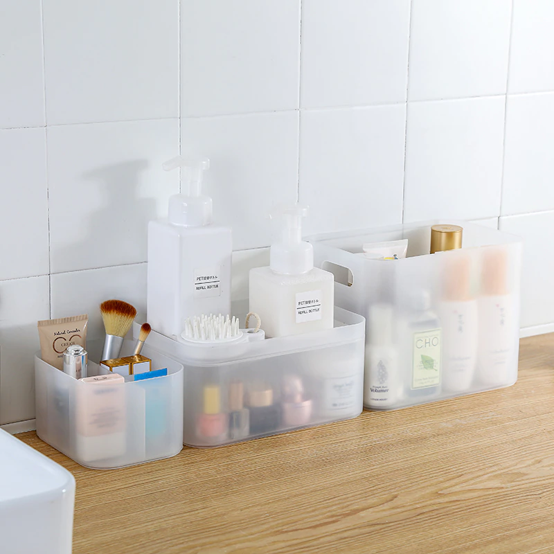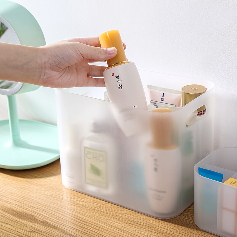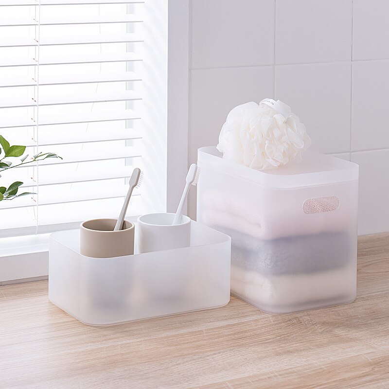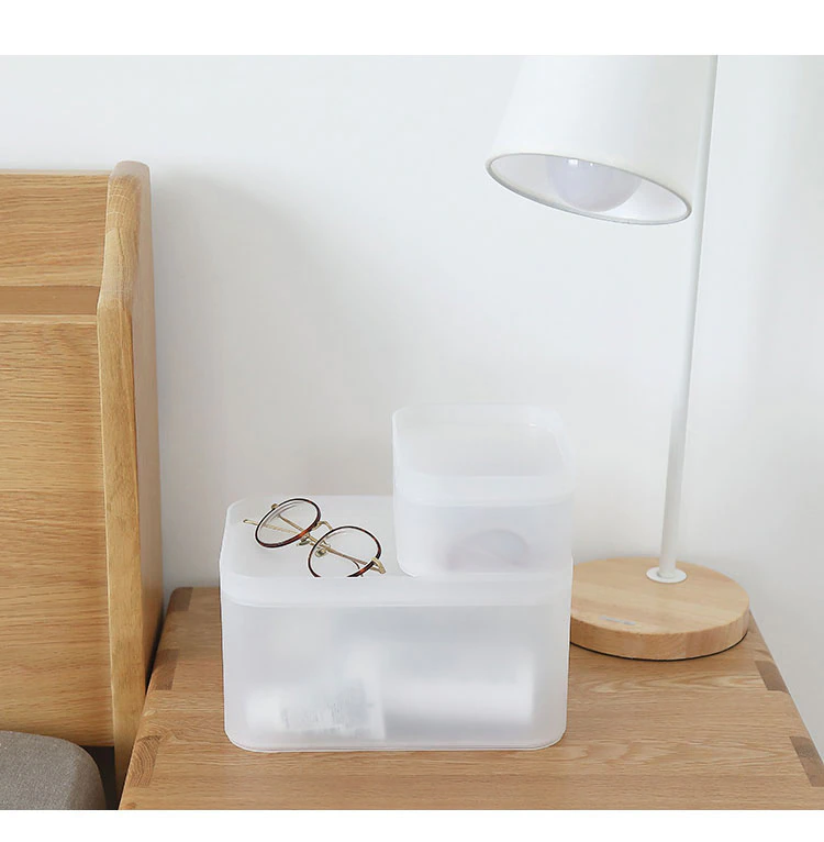Make this Muji style clear desk organiser a home storage essential. It's a multipurpose organiser box which you can stack on shelves, place under your bathroom sink, or hide away in your wardrobe. Made from plastic, cleaning it up is a breeze. It also has a frosted transparent design so you can easily see its contents. This box is a great storage solution to declutter any space in your home and protect your items from dust and humidity.