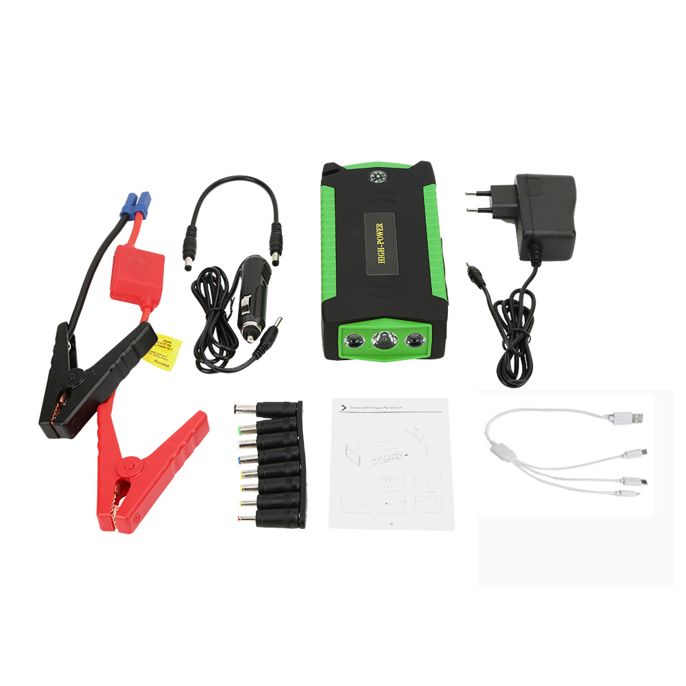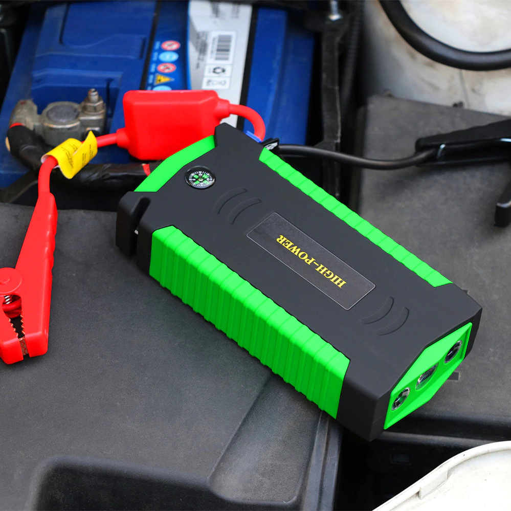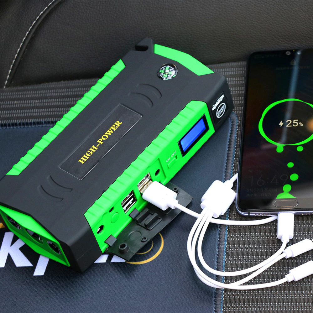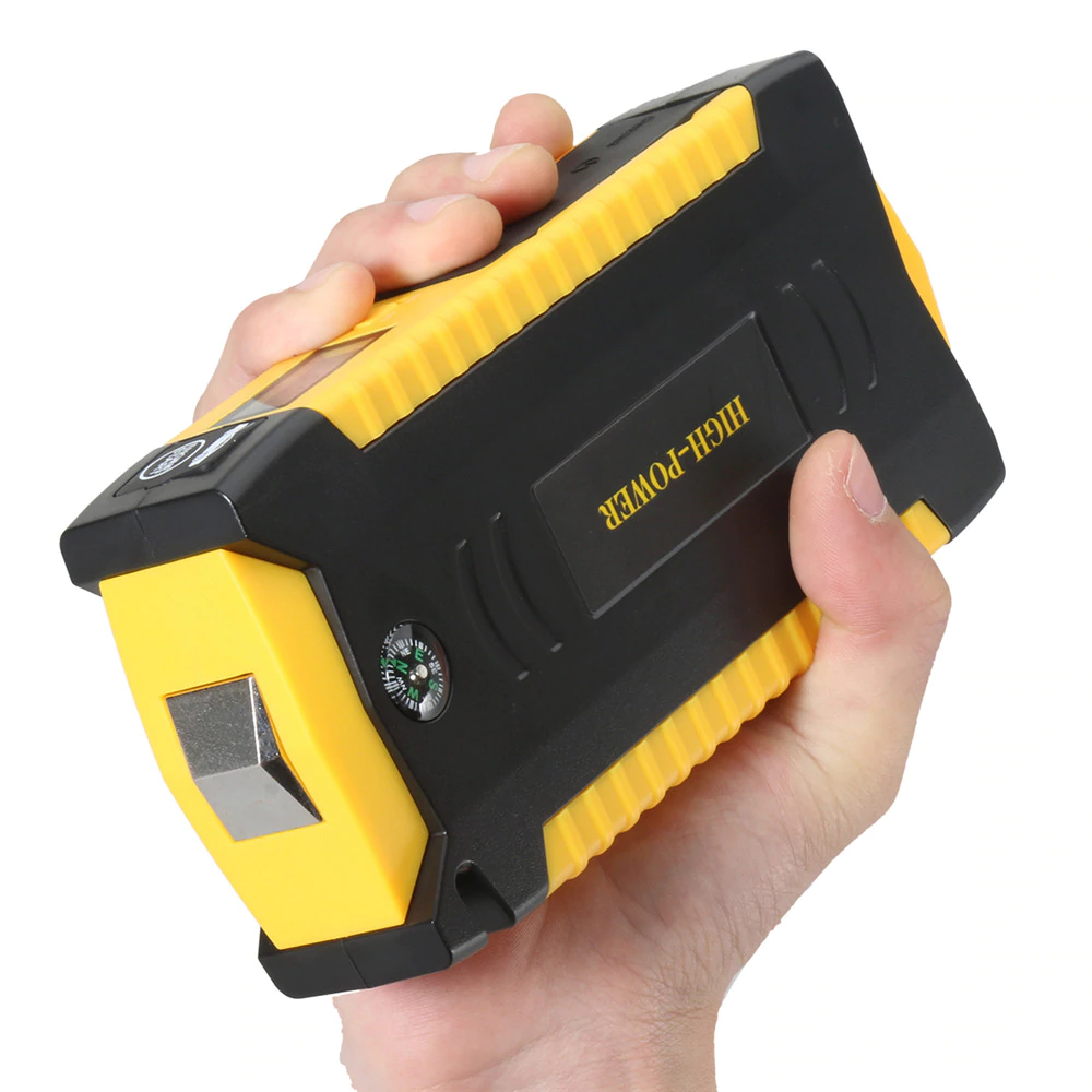 This handy little device packs a powerful punch! With its multi-function capabilities, you can use it to jump start your car, charge your phone, and even power up your laptop. Its sleek and compact design makes it easy to store in your car or take with you on-the-go. Plus, it's built to last with high-quality materials and a long-lasting battery. Don't be caught off-guard with a dead car battery - get this multi-function car jump starter today!