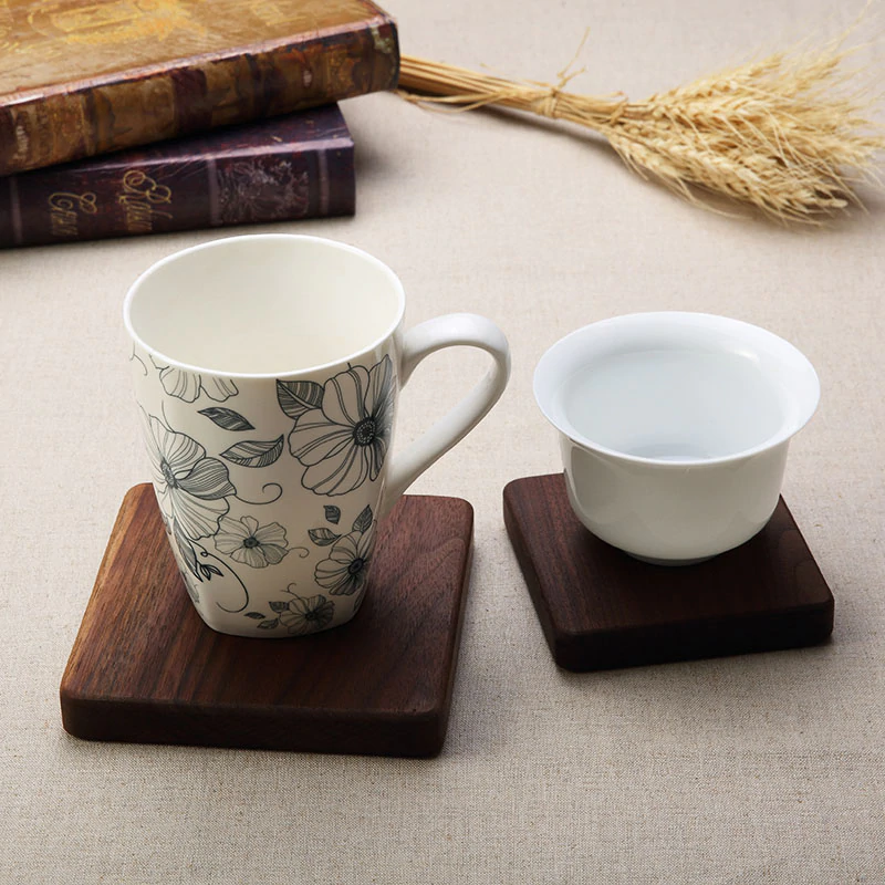 Protect your fragile surfaces from hot and cold beverages with these natural wood coasters. These traditional Japanese-style coasters are made of a thick heat-resistant Walnut wood block to offer protection from heat and water marks left by hot cups and bowls.