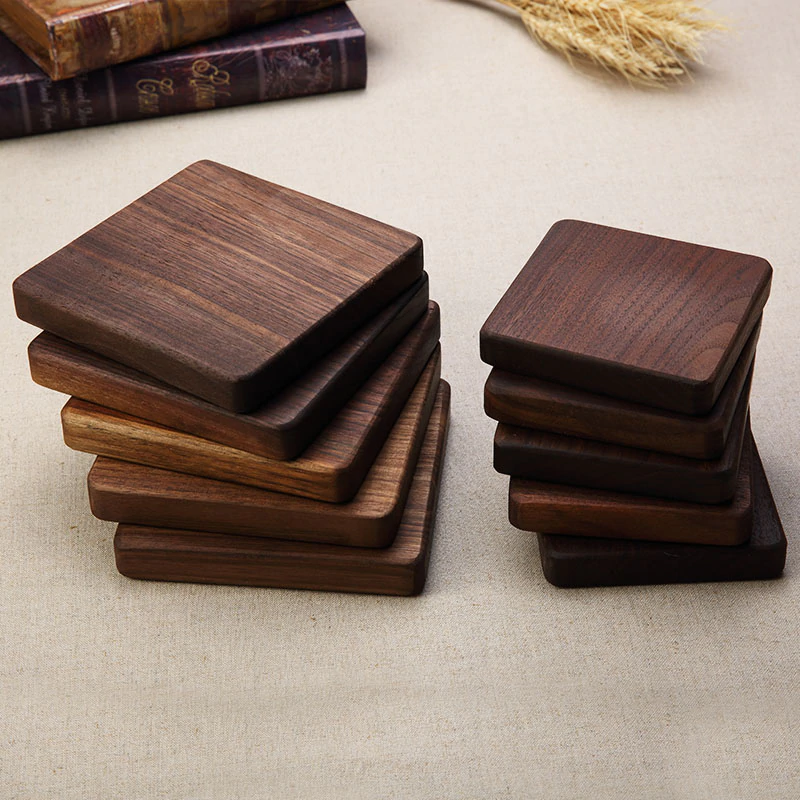 Protect your fragile surfaces from hot and cold beverages with these natural wood coasters. These traditional Japanese-style coasters are made of a thick heat-resistant Walnut wood block to offer protection from heat and water marks left by hot cups and bowls.