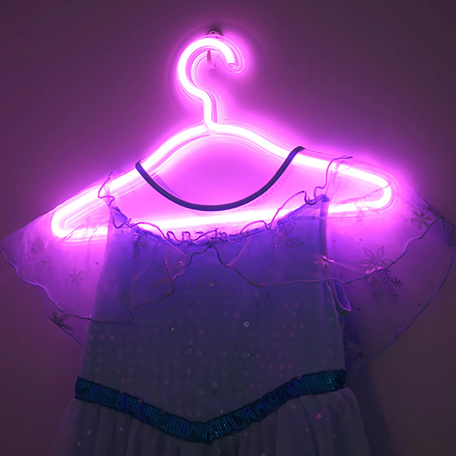 These neon hanger lights are super eye catching and can be used as an LED display on their own, or to hang up clothes and create a striking display in your clothing store or market stall. They're USB powered so there's no need to worry about batteries and are available individually in a range of bright colours.