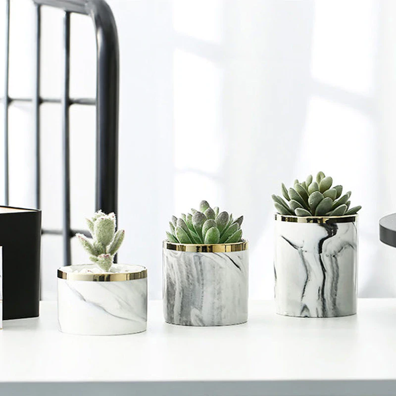Showcase your favourite plants in this stunning marble ceramic pot. It's available in multiple sizes and colours, and comes with an iron stand to lift your plant off the floor making it a centre piece in your space.