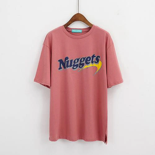 Make a statement with this Nuggets print tee. The bold letter print will ensure you stand out from the crowd, while the soft cotton fabric will keep you comfortable all day long. The oversize fit adds an edgy touch to your outfit, making it the perfect addition to your streetwear collection. Wear it with your favorite jeans and sneakers for a casual yet stylish look.