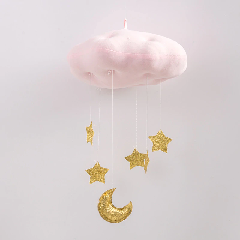 Bring an extra level of cuteness to your nursery with this hanging cloud mobile. Your baby will enjoy gazing up at the stars for hours at a time. Made with soft textiles and fabrics for a welcoming and minimal look. A great addition to your own nursery or an adorable gift for those expecting their own children in the near future.