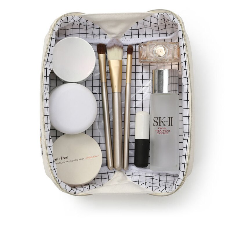 Keep your cosmetics organised in this stylish cotton makeup pouch. Designed to open wide so you can have easy access to your products without having to dig around. Features a waterproof lining and a zip closure to keep contents secure.