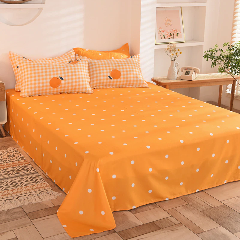 Liven up your bedroom with this orange bed cover set. This bedding set has a playful and friendly design, with various fabric patterns that surely add versatility to your space. Made with breathable polyester blend, each set includes a duvet cover, a bedsheet, and two standard pillowcases.