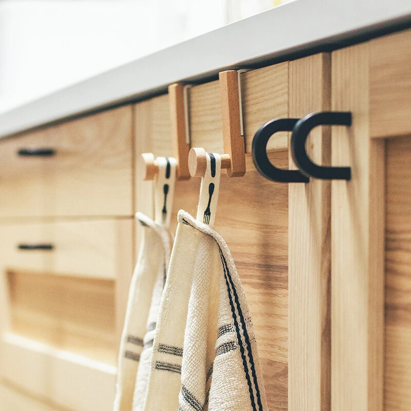 Need to hang things? Don't want to drill holes in the wall? These over door hooks are just what you need. Hang any thing from hats, towels, or even light jackets without worry. Just put them at the top of your door! These hooks are wooden and come with a stopper, while the portion that goes on top of the door is made of sturdy metal.