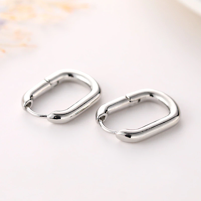 A timeless style, hoop earrings are a great addition to any look. Made from lightweight and durable copper alloy these geometric clasp earrings have a minimalist form whilst also being oversized. A trendy statement piece to add to your outfit.