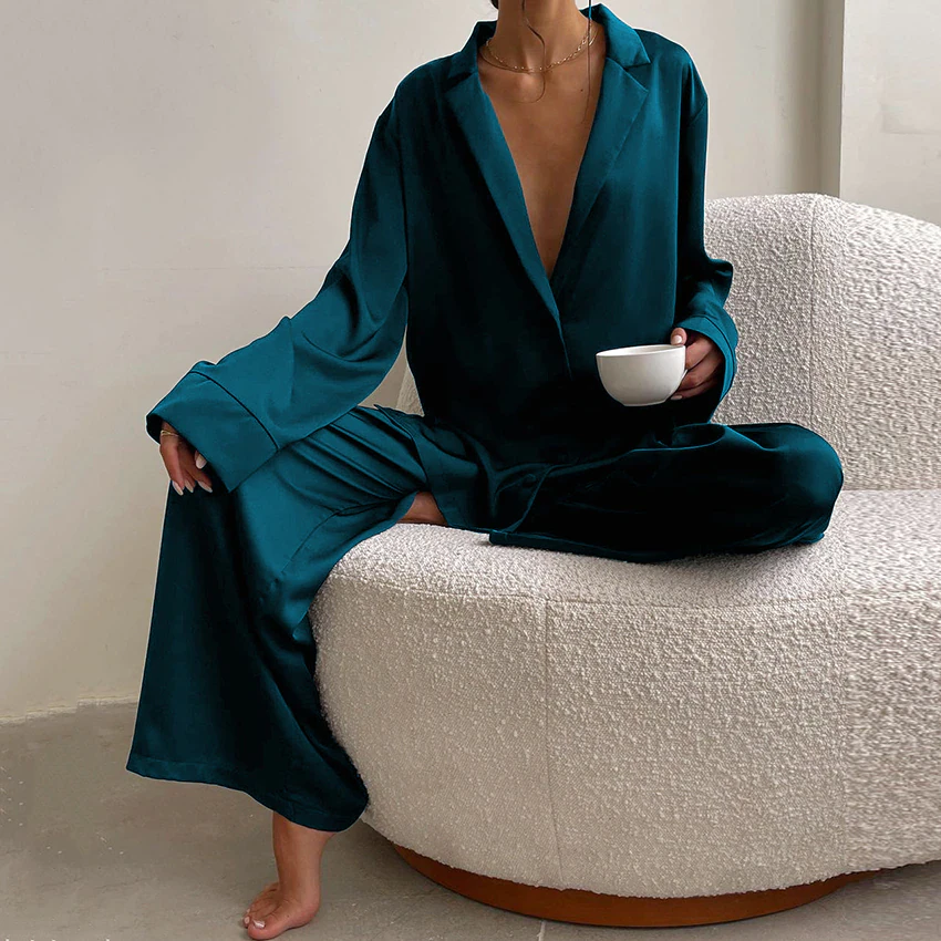 Luxuriously silky and oh so comfy, you'll feel like royalty when you slide into these oversized satin pyjamas.
