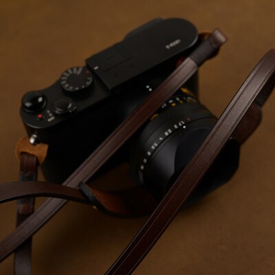 Carry your camera comfortably on your neck or over your shoulder with this stylish leather camera strap.