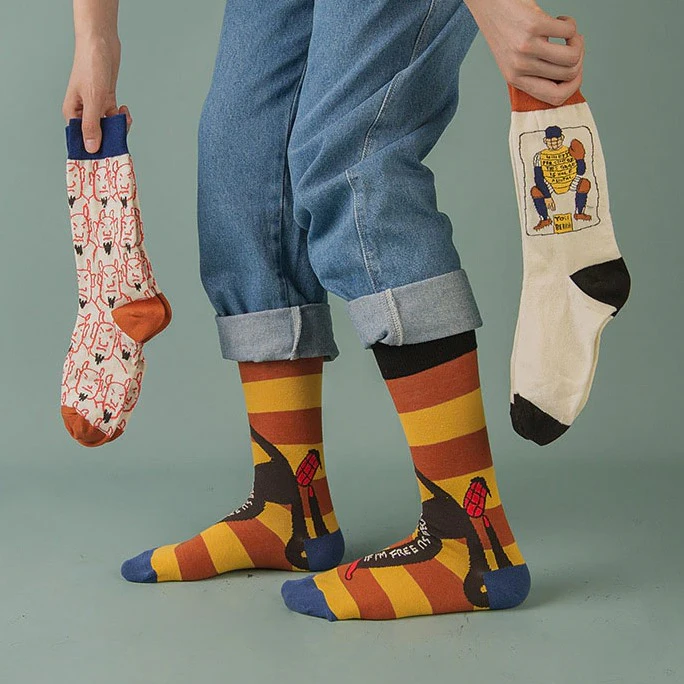 Add some color and creativity to your outfit with these paint design patterned socks. Choose from a range of abstract art designs that will make a statement wherever you go. The middle tube height ensures a comfortable fit that will stay in place all day long and adds a pop of colour to your look. Elevate your sock game and express your unique style with these fun socks.