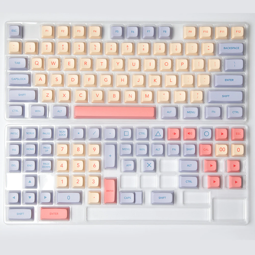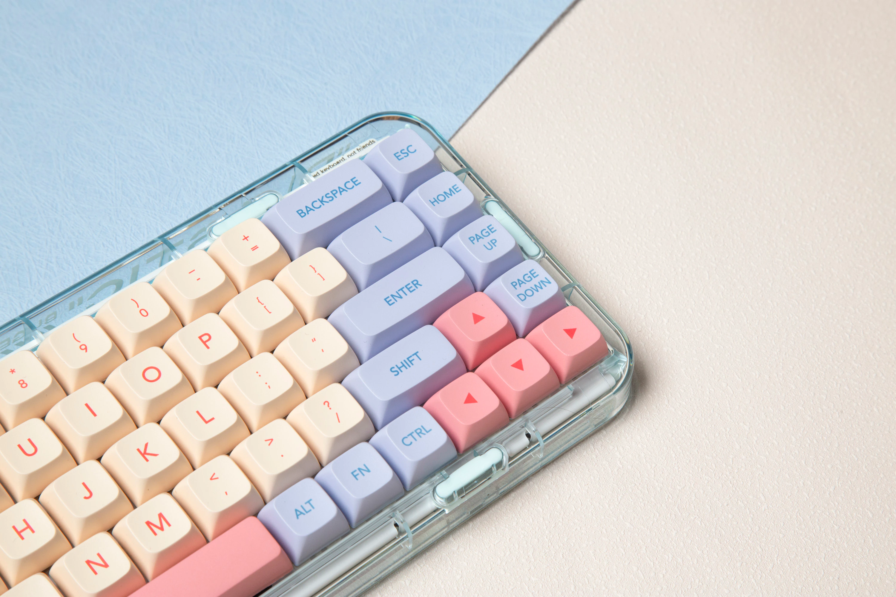 Personalise your keyboard with aesthetically-pleasing keycaps. This pastel mechanical keycap set includes 132 caps to fit both mini keyboards and full size keyboards. Made from PBT for durability and wear resistance, each cap is sculpted in XDA profile, with uniform height for maximum layout compatibility. Features a multi-coloured design printed with large clear legends.
