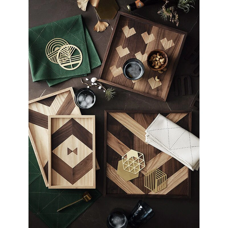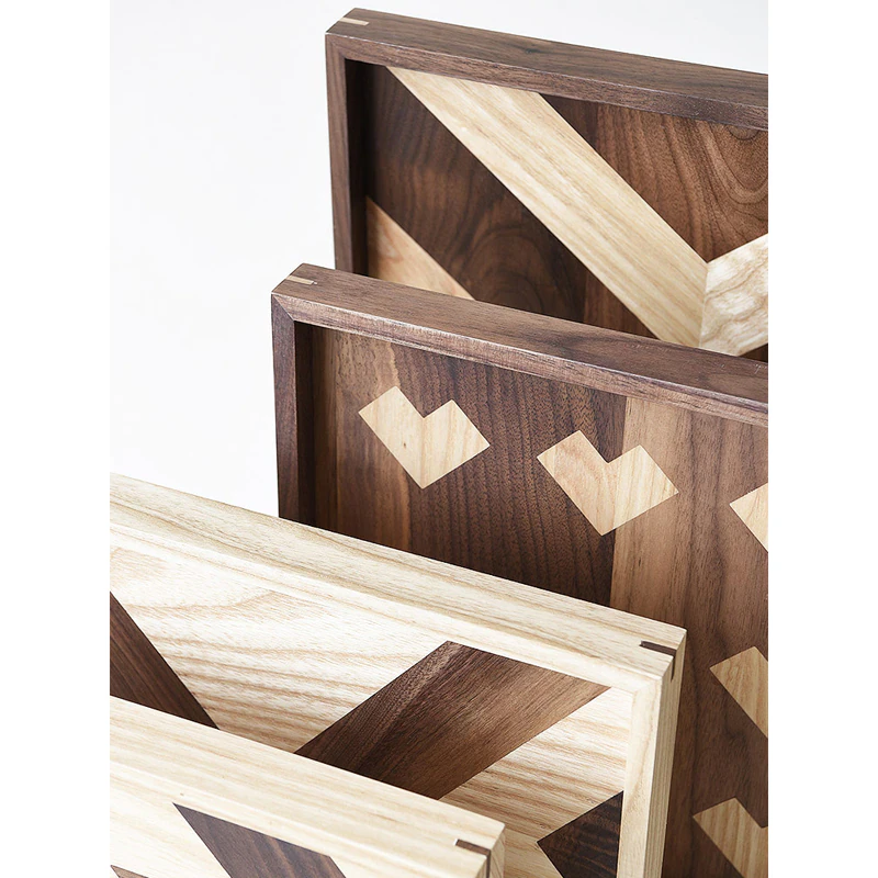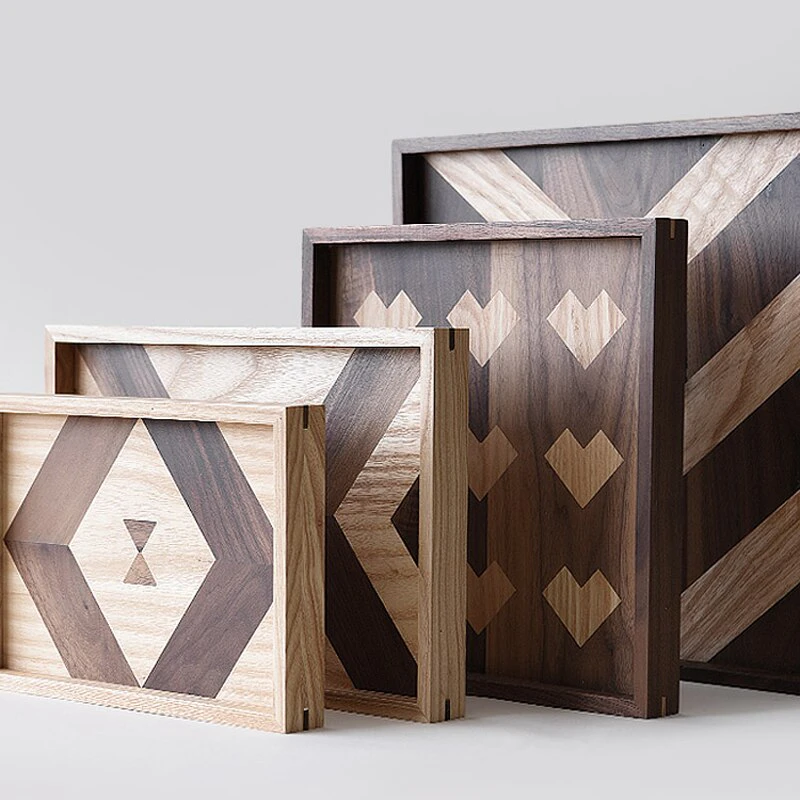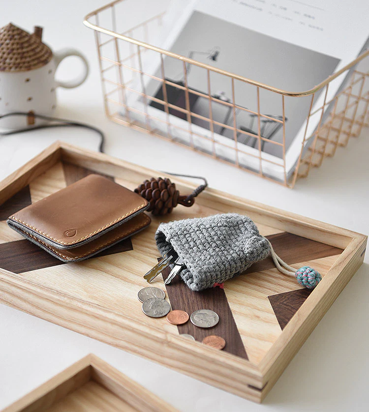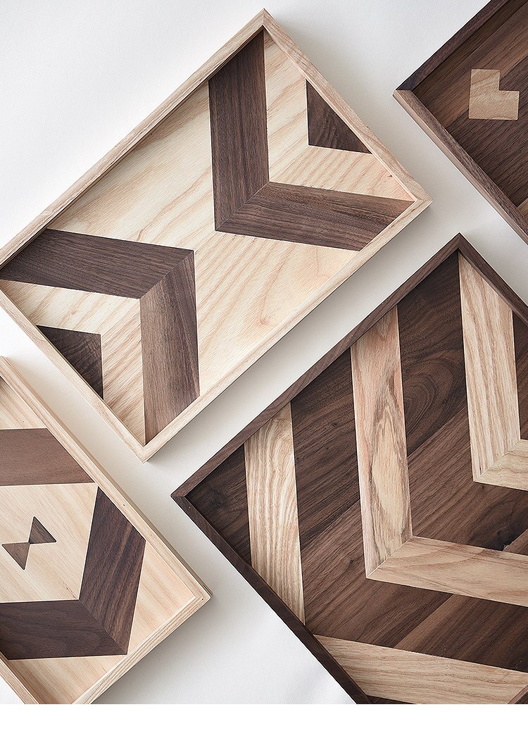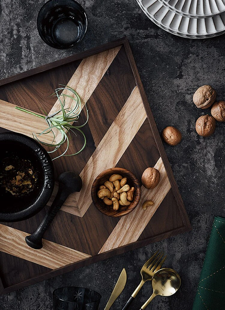 If the only thing your dishes are serving up is stale style, it's time to refresh your cabinets with an on-trend touch. This Patterned Wood Serving Day is a great option for a mixed material look at home in a modern farmhouse. Crafted from a blend of teak wood, kempas wood, and white oak, this piece features a unique color-blocked look with textures created from different raw materials. We recommend wiping this tray with dry towels and tissues to clean.
