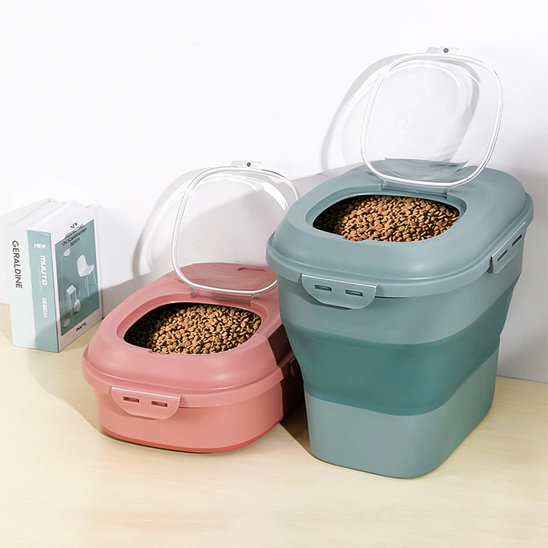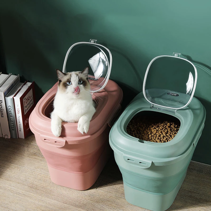 Tired of having massive bags of pet food lying around your house? Use these stylish containers to store your pet's food and never worry about food bag mess again. These storage box's have been carefully designed to be moisture-proof, collapsible, durable, and easy to see into, making it a convenient and hygienic storage system for your needs. They can also be used for bulk food storage for items such as rice, flour, oats and more. Available in green and pink and in two sizes.
