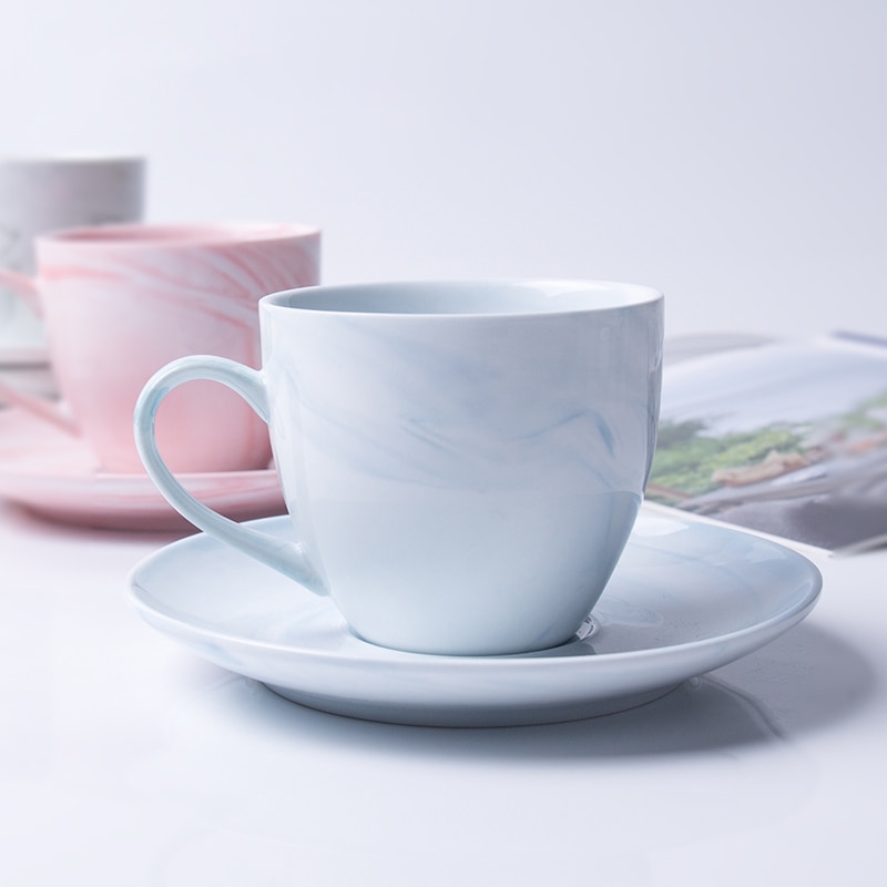 Sip your morning coffee in style with this beautiful pink marbled coffee cup. Made from the finest bone china ceramic, this cup is durable and has a unique texture that will make your mornings brighter. The cup comes with a matching saucer, making it perfect for relaxing morning coffee breaks or afternoon tea. Choose from multiple sizes and colours to match your personal style and make your mornings special with this stunning coffee cup.