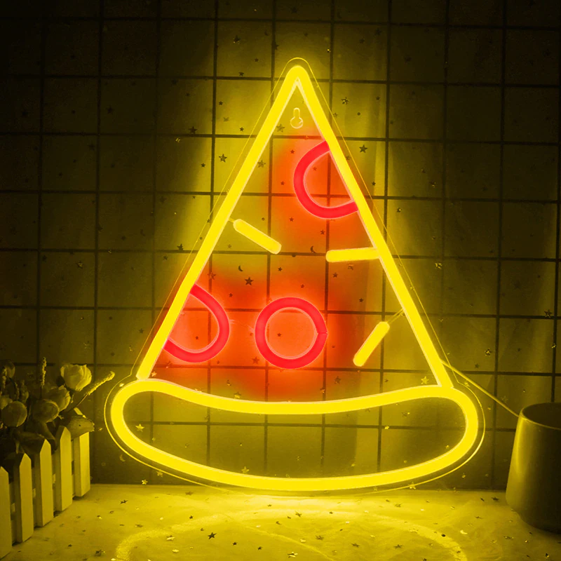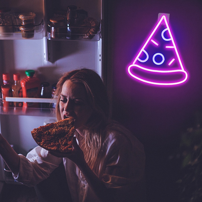 Grab a slice of this! Illuminate your space and brighten up your night with this creative LED slice of pizza. Mount on the wall or leave free standing, this USB powered pizza neon light emits a colourful glow and makes a great addition to the office, bedroom or man cave.