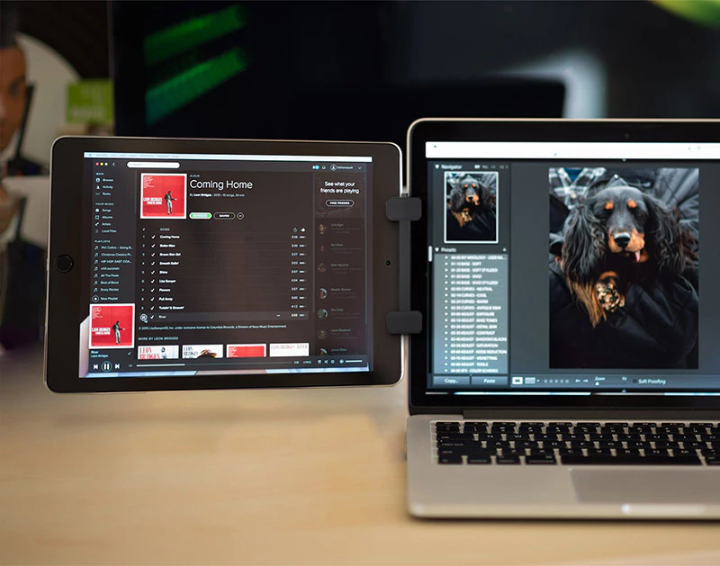 Increase your productivity with this tablet mount! Simply attach it to your laptop or monitor and enjoy the benefits of having a second monitor. It even curves slightly in for a more immersive experience. It's also small enough to take with you wherever you need to work!