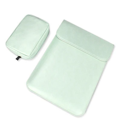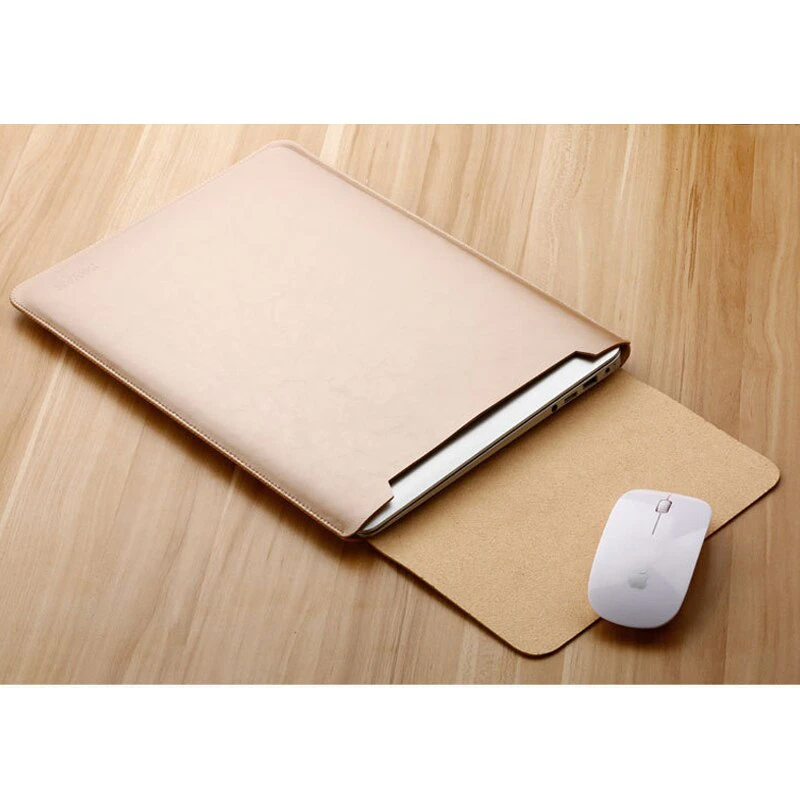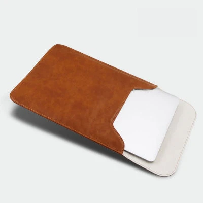 This laptop sleeve is made of PU leather, constructed with a scratch-resistant, shock-absorbing surface. The sleeve is space-saving and lightweight, as well as being waterproof. Perfect for protecting your laptop when on the go. Place your laptop inside the sleeve and secure it with the invisible, magnetic, double-buckle design, so you can get your laptop without dealing with any stubborn zips. The sleeve can also be used as a mouse pad and can fit many different devices, with many sizes available that range from 11.6-15.4 inch laptops. Various colors are also available.