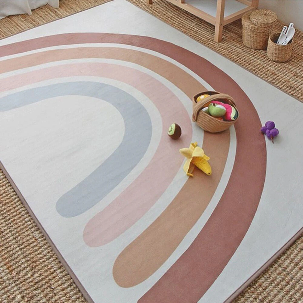 This cute rainbow mat is the perfect addition to any kids room.