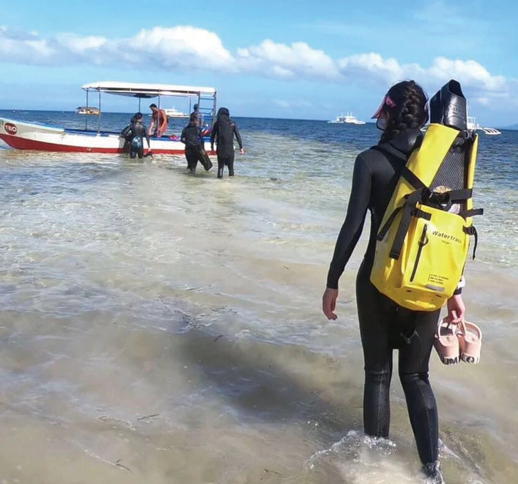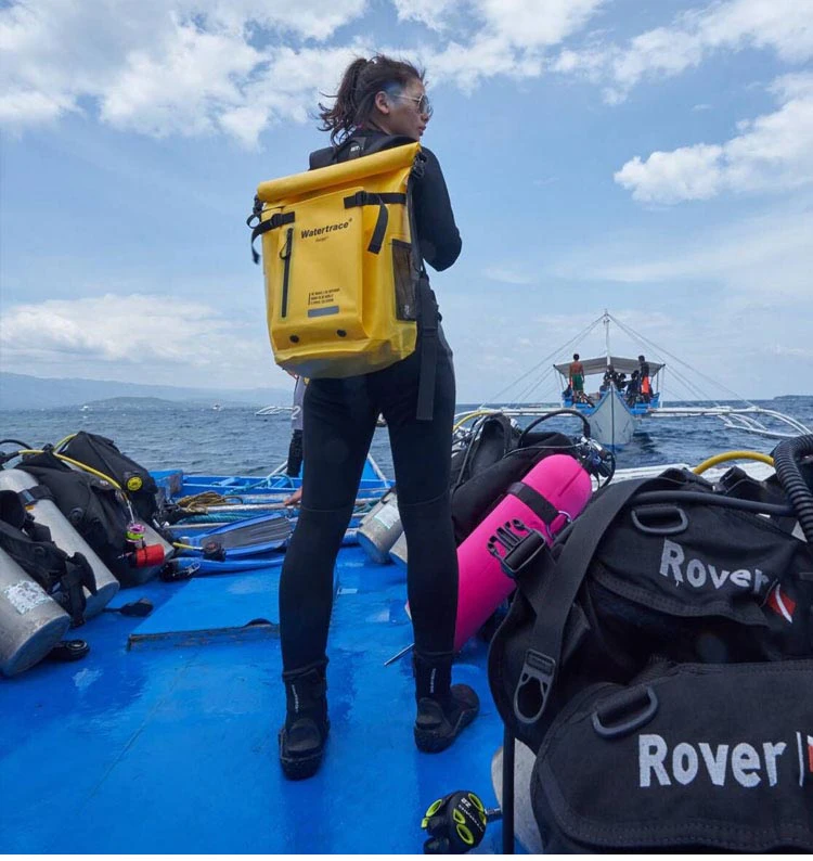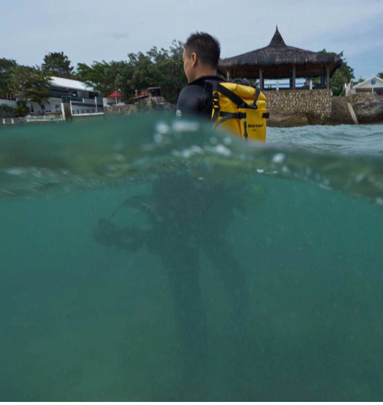 This backpack is perfect for anyone who loves water activities. It's designed to be 100% waterproof, keeping all your belongings dry and safe no matter what. With its rolltop closure, it's easy to open and close, making accessing your things a breeze. Made of durable nylon material, it can withstand the toughest of conditions. The backpack has a large 50L capacity, providing plenty of space for all your essentials. Whether you're going on a dive, a kayaking trip, or just a day at the beach, this backpack is the perfect companion for any water adventure.