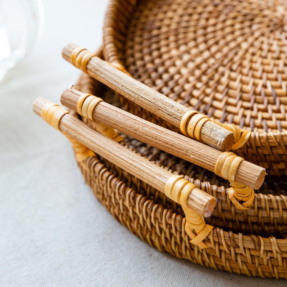 Ideal for breakfasts in bed, serving tea, or even for displaying jewellery or decor around the house. This serving tray is made of rattan, which brings earthy colours and a vintage vibe to home decor. The tray feels high quality and is versatile with two wooden handles if you need to carry it around. The tray comes in three diameters: 24cm, 28cm and 32cm.