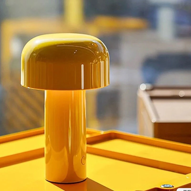 This enchanting mushroom inspired lamp features a minimalist form that casts a soft light.