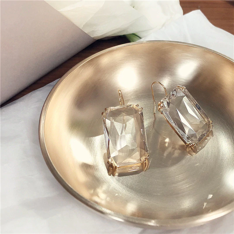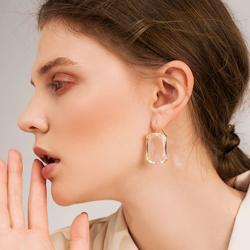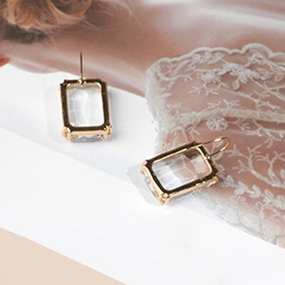 These stunning earrings boast a unique geometric diamond style pendant design that will elevate any outfit. Made with transparent resin material, they offer a sleek and modern look that will make you stand out from the crowd. The earrings are a lovely accessory for any occasion, whether you're heading to work or out on the town, and they make a wonderful gift for someone special.