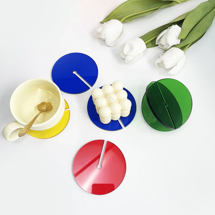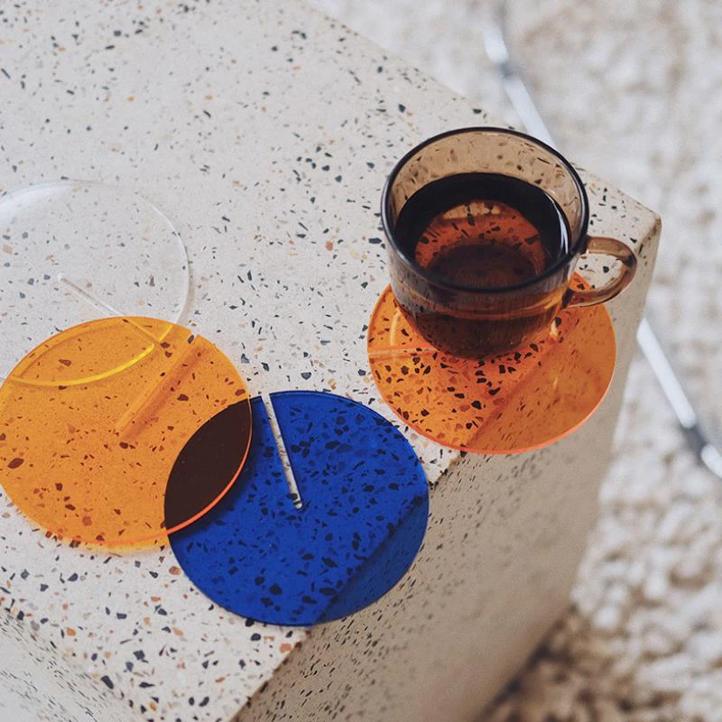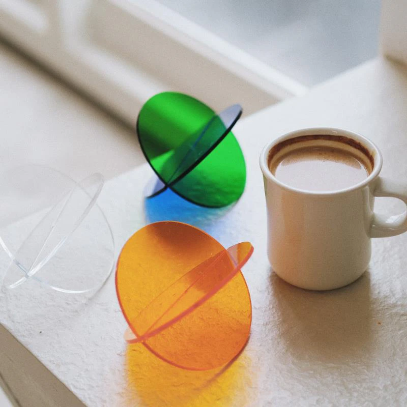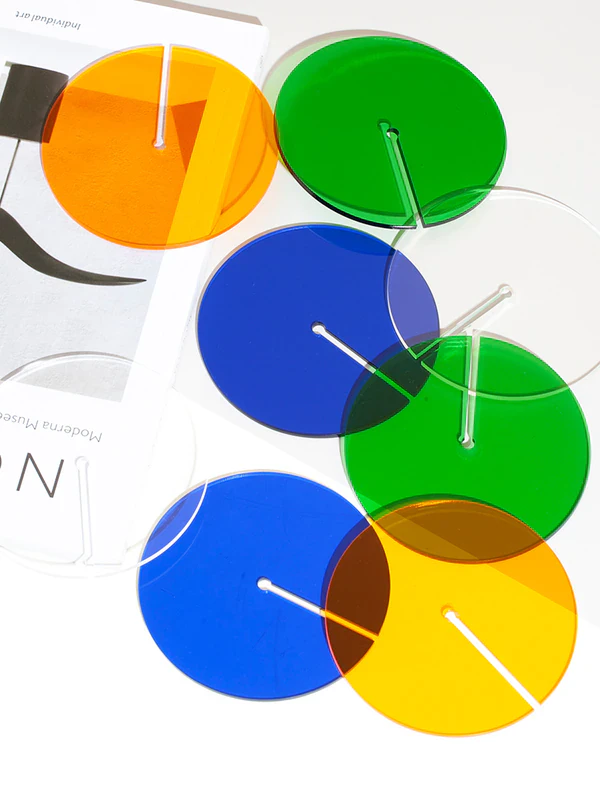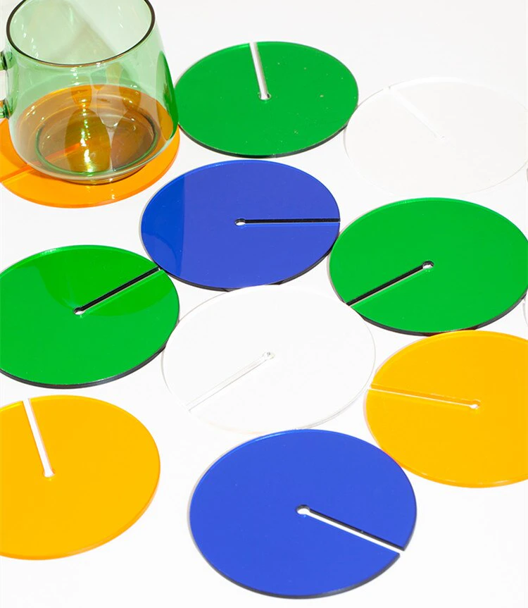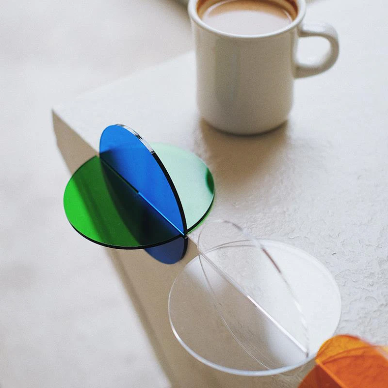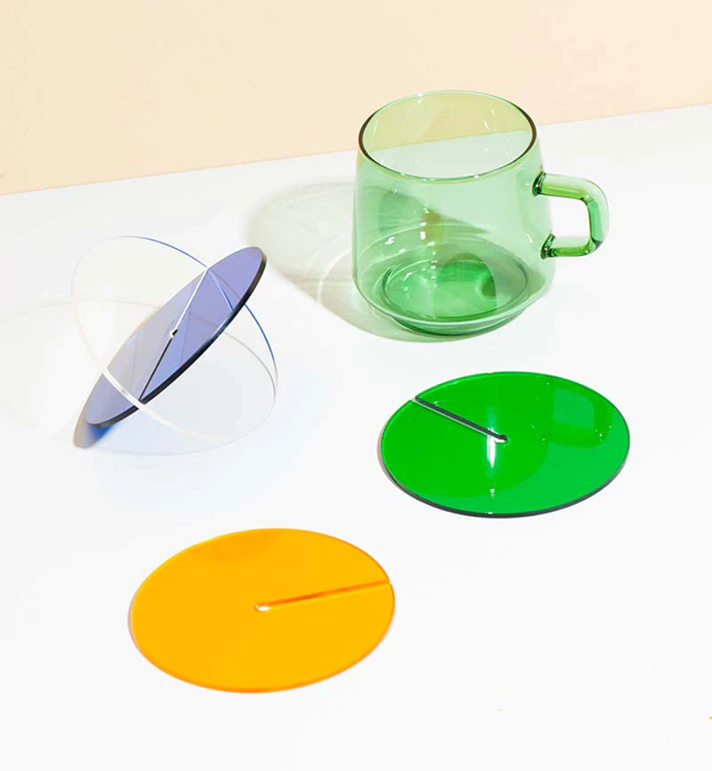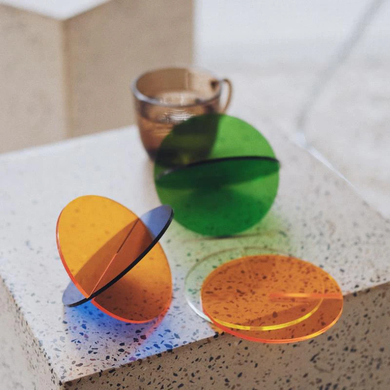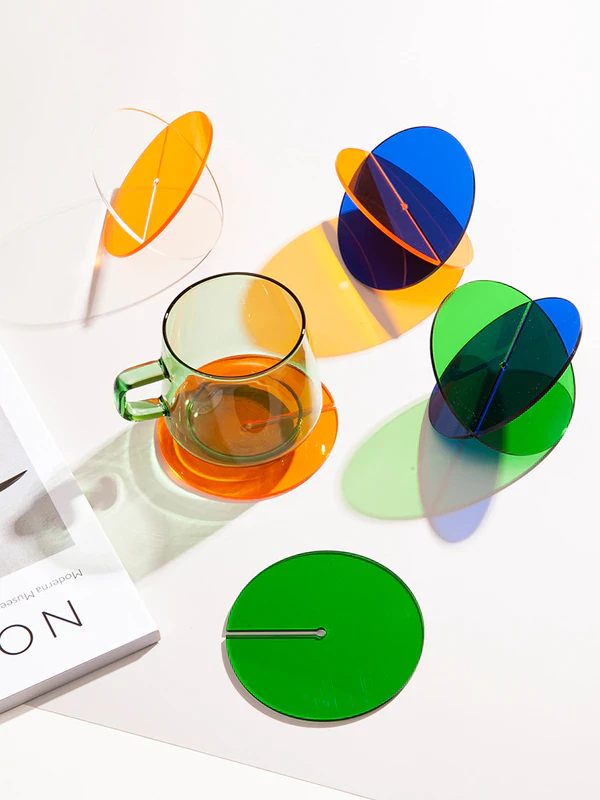 Add a pop of colour to your coffee table with these retro acrylic coasters. The unique slotted design allows the coasters to double as a decorative ornament. Simply slide 2 coasters together to instantly create a work of art. Available in white, blue, orange and green, mix and match to create your own unique set of coasters - sure to impress your guests.