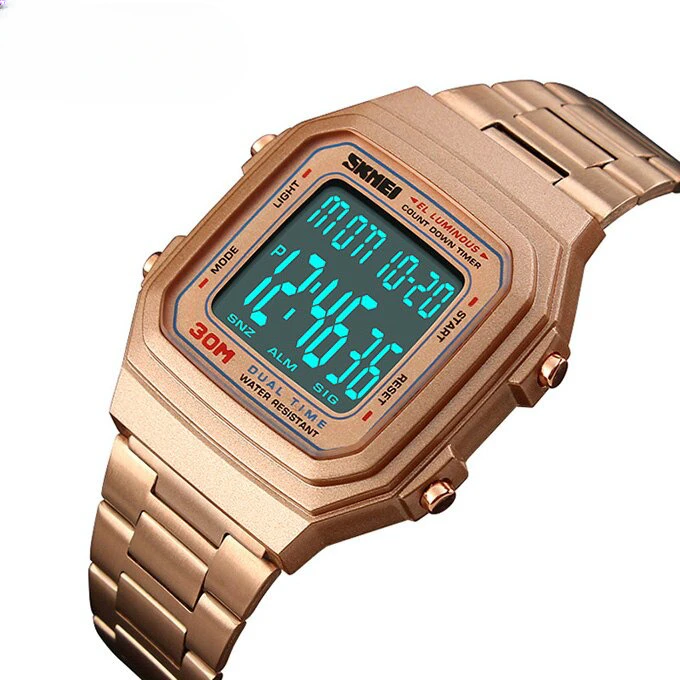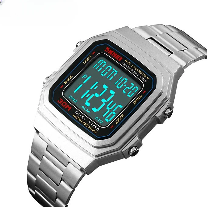 This wristwatch is the perfect accessory for those who appreciate both style and functionality. The LED display provides a clear view of the time at a quick glance, while the countdown timer and alarm settings offer practical features for everyday use. Plus, with its water-resistant design and durable stainless steel band, this watch can handle all of life's adventures.