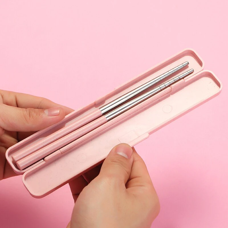 Ideal for enjoying your lunch on the go, these pastel metal chopsticks come with a handy lightweight storage case so you can pop them in your bag or car when out and about.