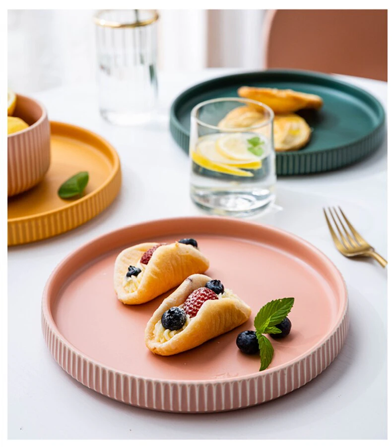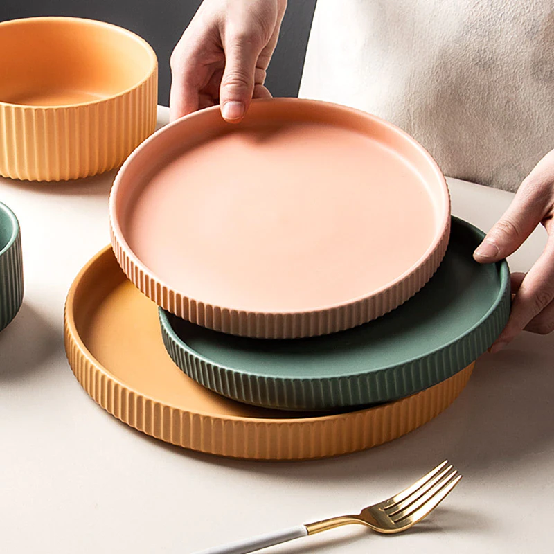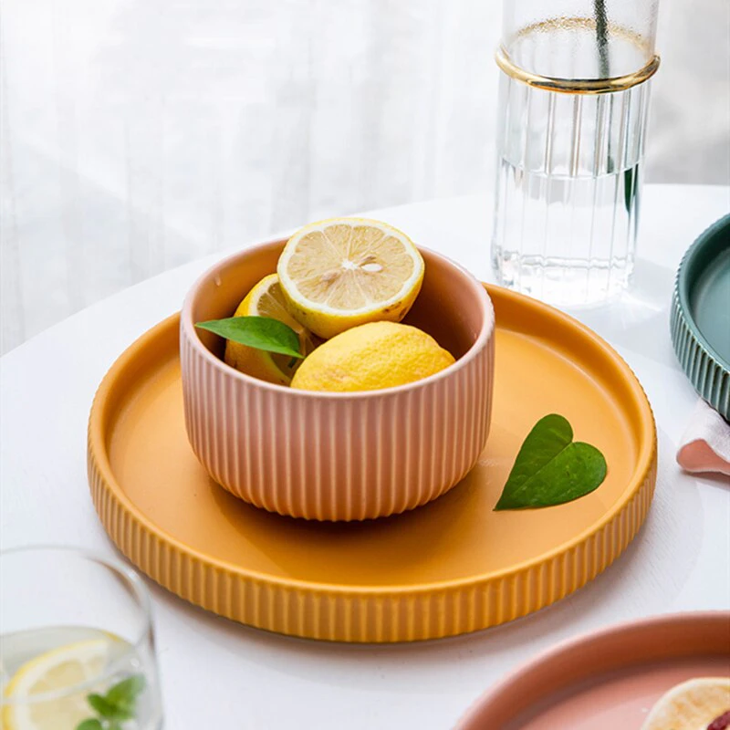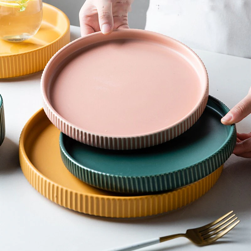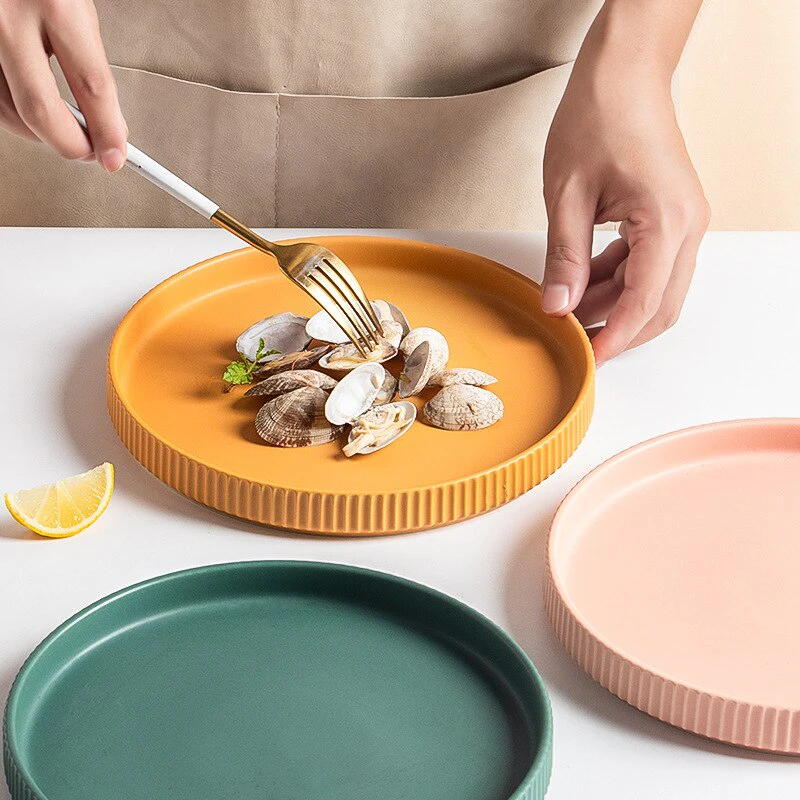 Wow your next dinner guests with this coloured ribbed edge serveware. Made of ceramic, these are high quality kitchen essentials.