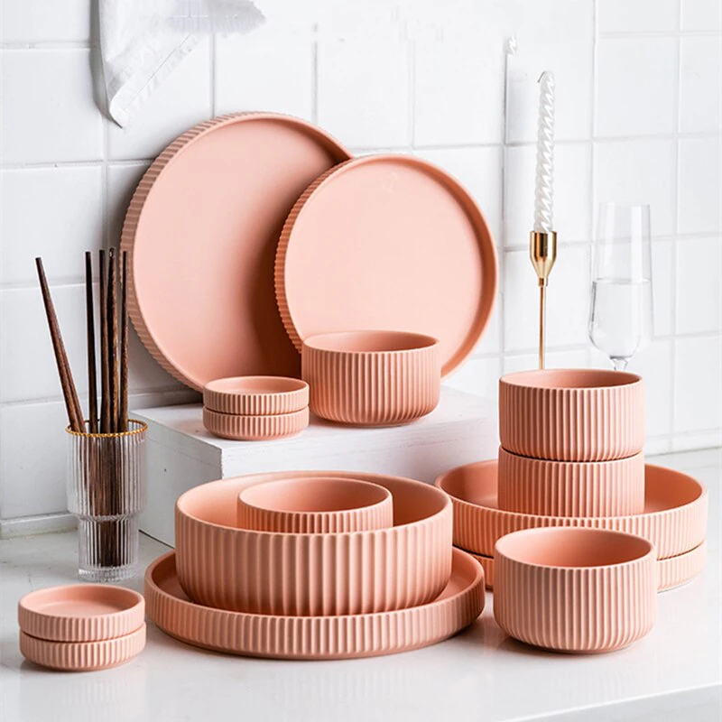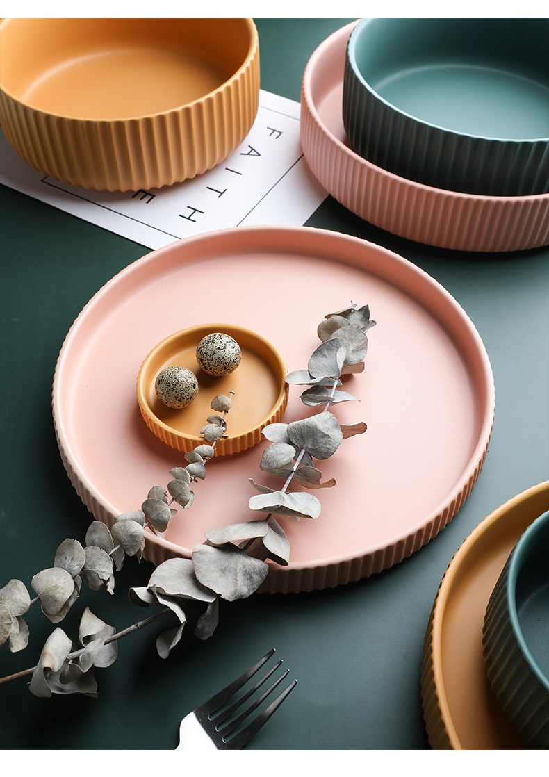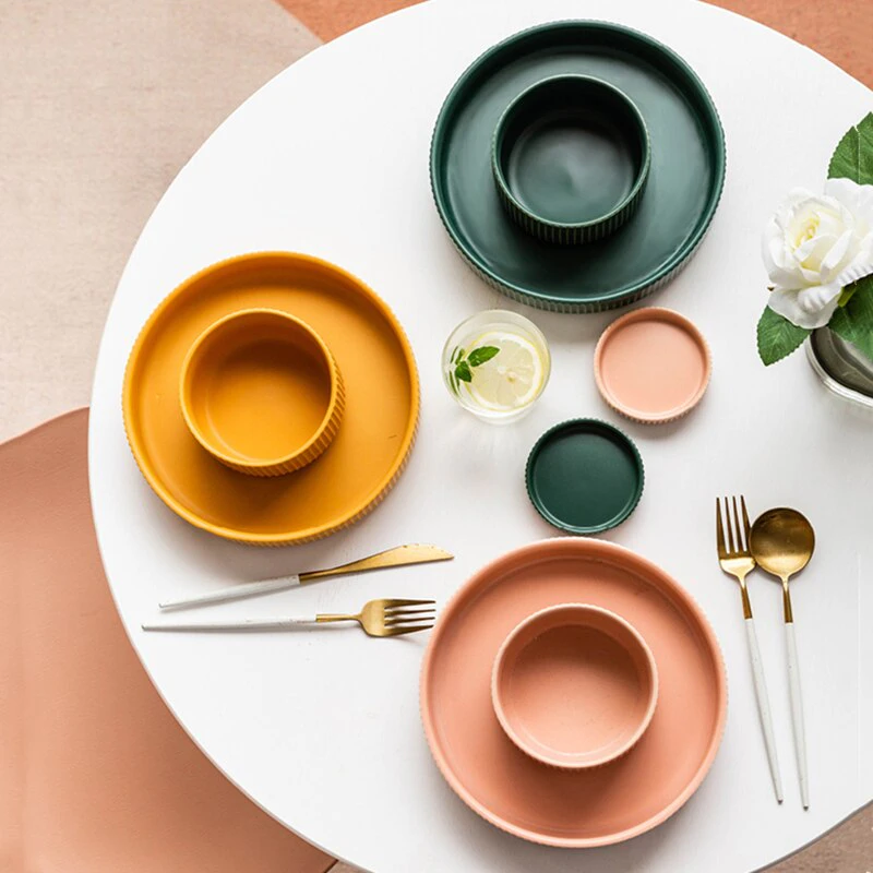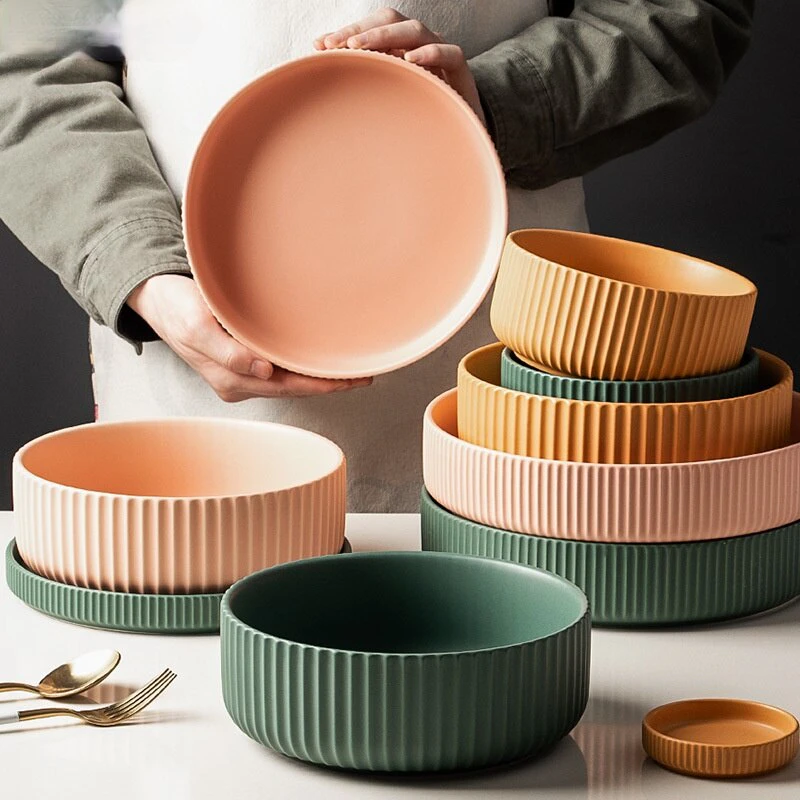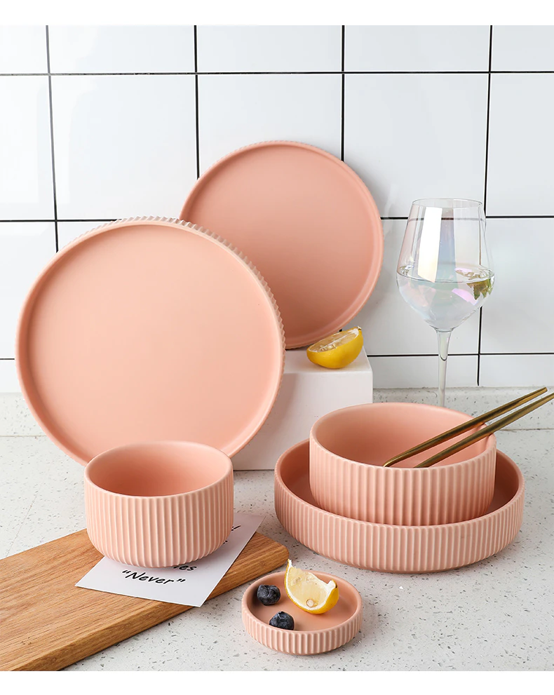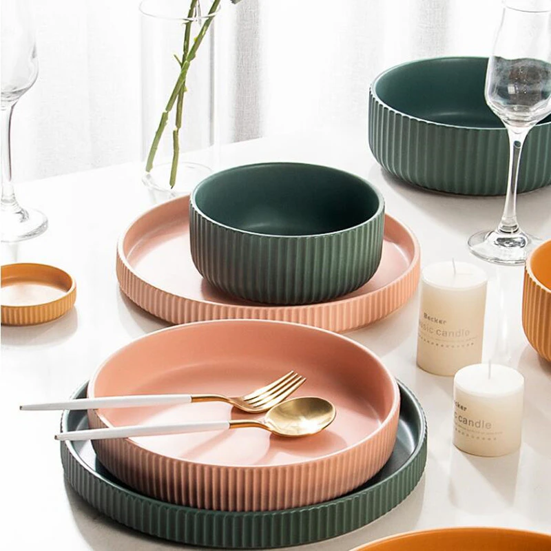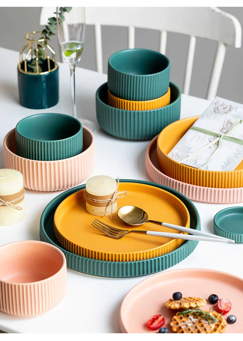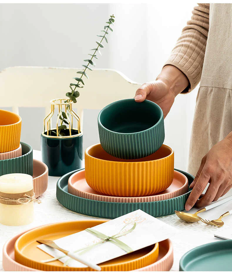 This ribbed edge serveware comes in dark green, mustard, or dusty rose colours. Give your kitchen a pop of colour with these bowls and plates that are available in a range of sizes.