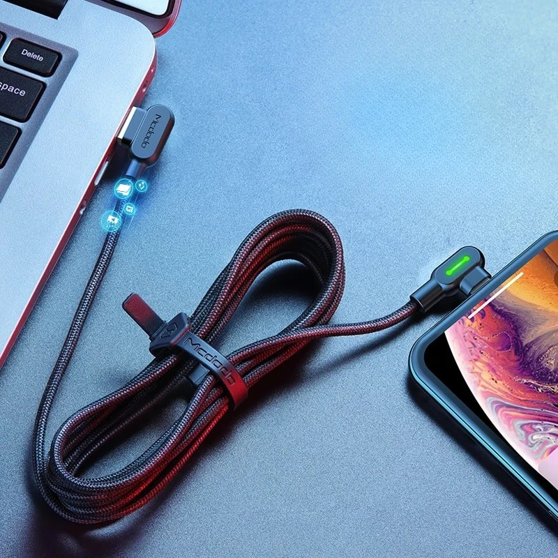 This charge cable is designed to make your life easier. With its right angle design, it allows you to comfortably use your device while charging it at the same time. The LED indicator light lets you know when your device is fully charged, making it easier to keep track of your devices' battery levels. The cable is made of durable woven nylon material, ensuring it will last you for a long time. With its fast charging capabilities of up to 2.4A, you can get your devices charged up quickly and easily. Say goodbye to tangled wires and hello to a more convenient charging experience with this woven charge cable.