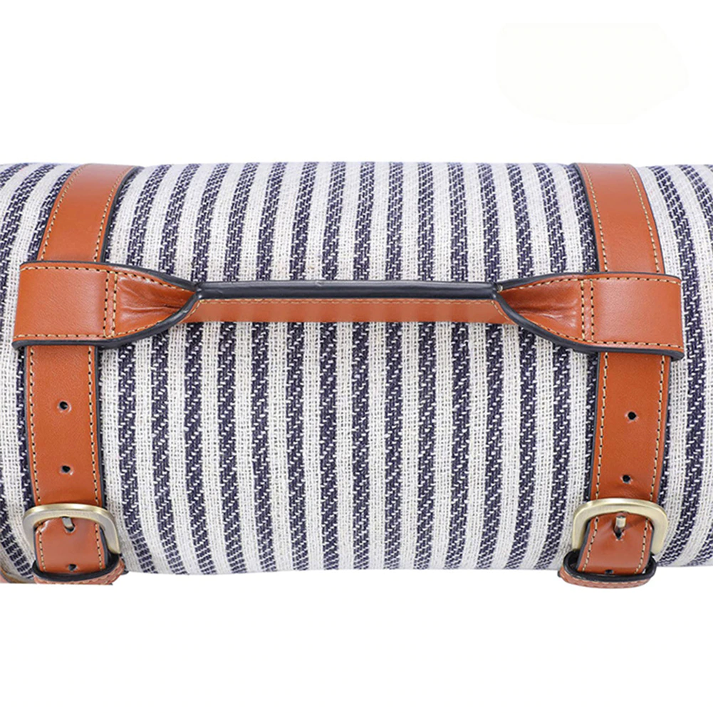 Picnics aren't much fun without something to sit on. This striped mat made of orlon and sponge combines comfort with durability and dryness, the bottom side is waterproof so it's perfect for the beach or if placing on damp ground, and it's super easy to clean - just shake off any dirt or sand and wipe down.