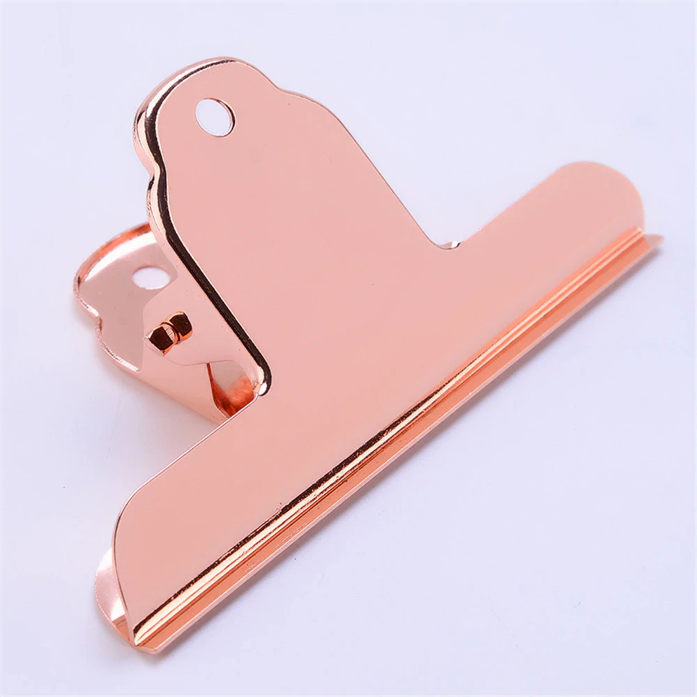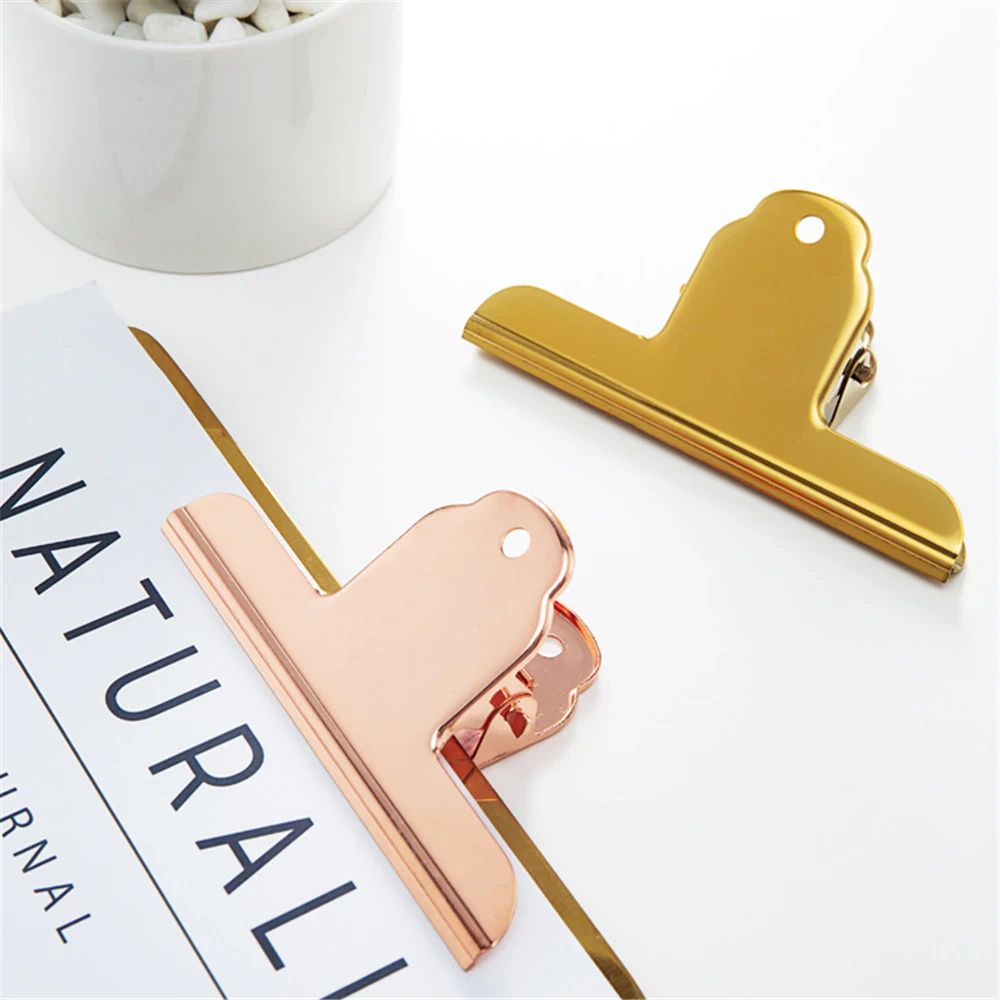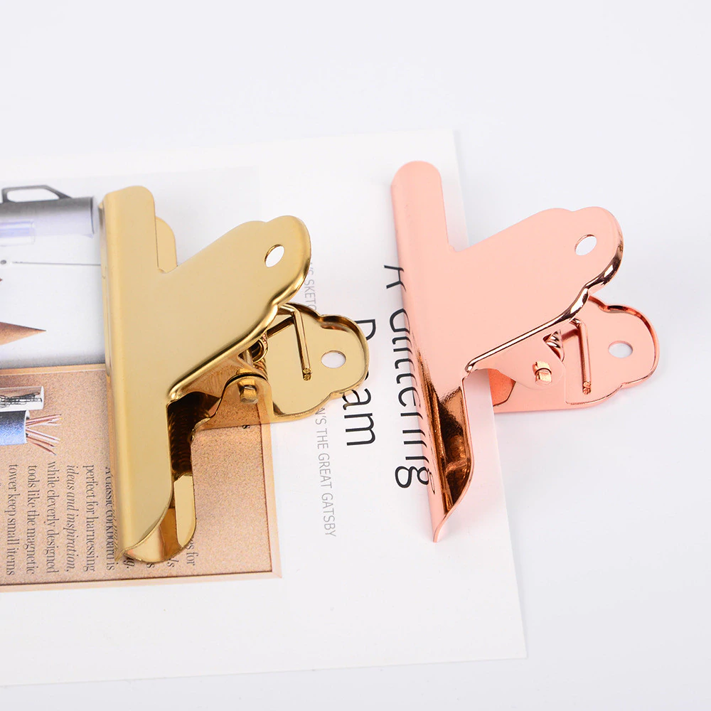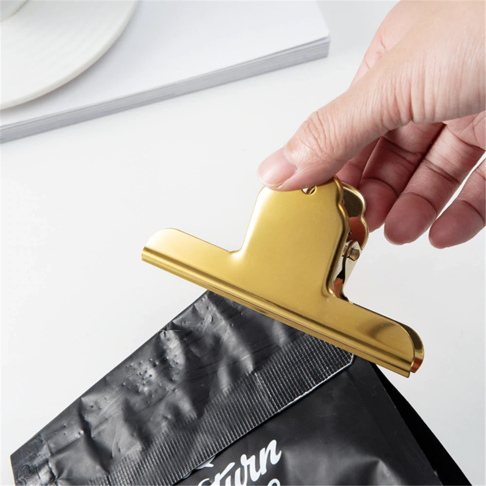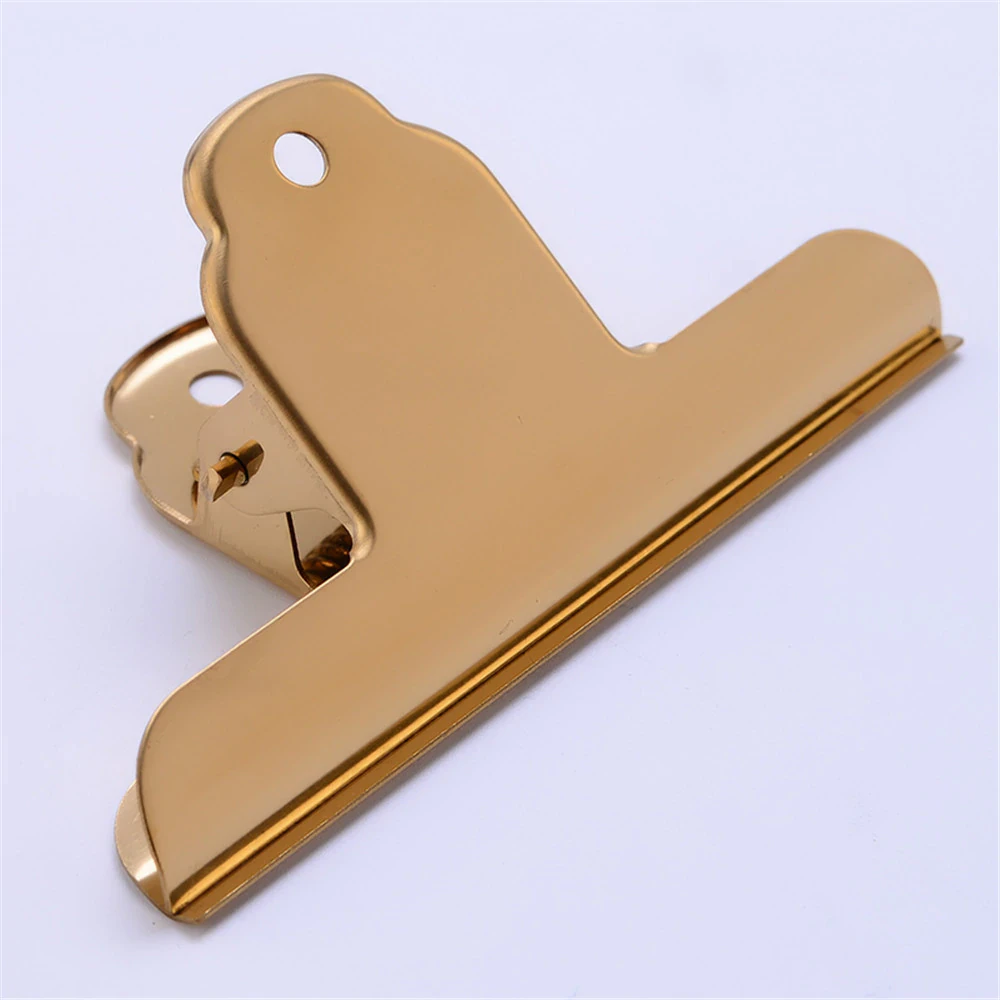 An easy way to keep your files organised that is not only practical but aesthetic. These bulldog clips are constructed using stainless steel, made to be durable and functional. When not using, store these clips by hanging them on a hook, using the hole designed at the top. Use to secure paper onto a clipboard in your office, or close opened bags or packets in your pantry or kitchen. The clip is metallic with a shiny surface - giving a classy and luxurious look, and being easy to see among many files.