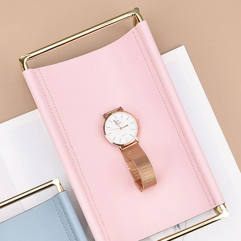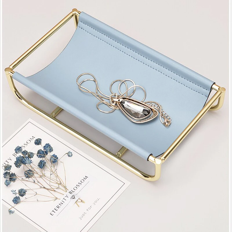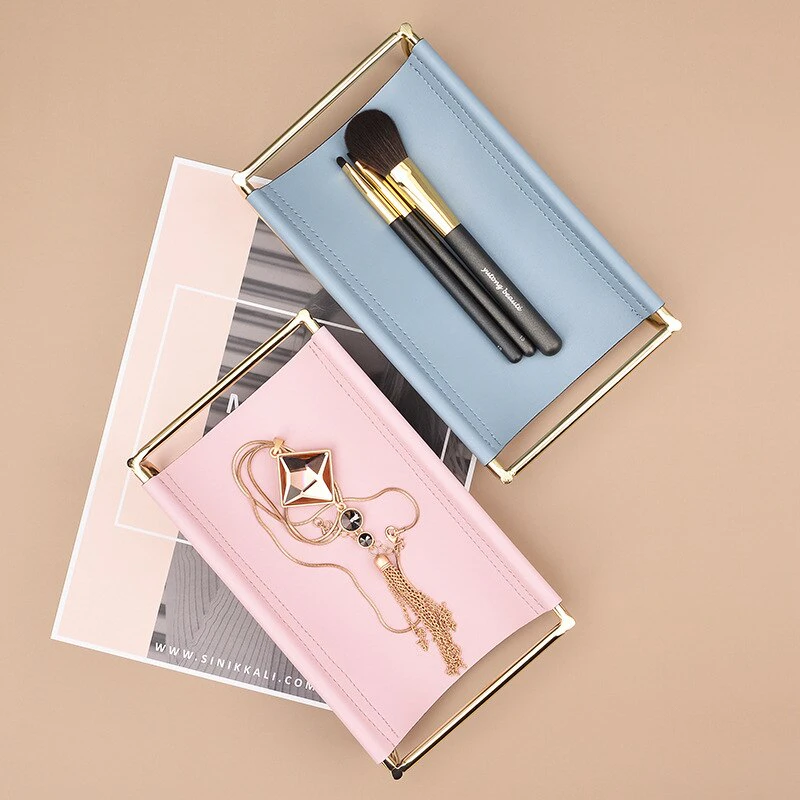 The Rose Gold Leather Jewellery Tray is a perfect way to store your favourite pieces on display or hidden away for safekeeping. The tray features an iron stand and a colourful leather-lined surface for storing your rings, earrings, necklaces, bracelets, and other trinkets. A nordic design with a touch of glamour will make any dressing table feel complete. With this stylish piece you’ll never have to worry about where to put your rings or earrings again!