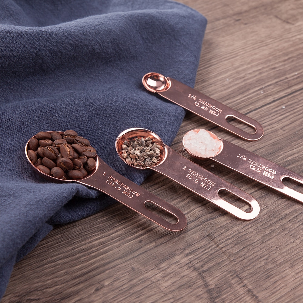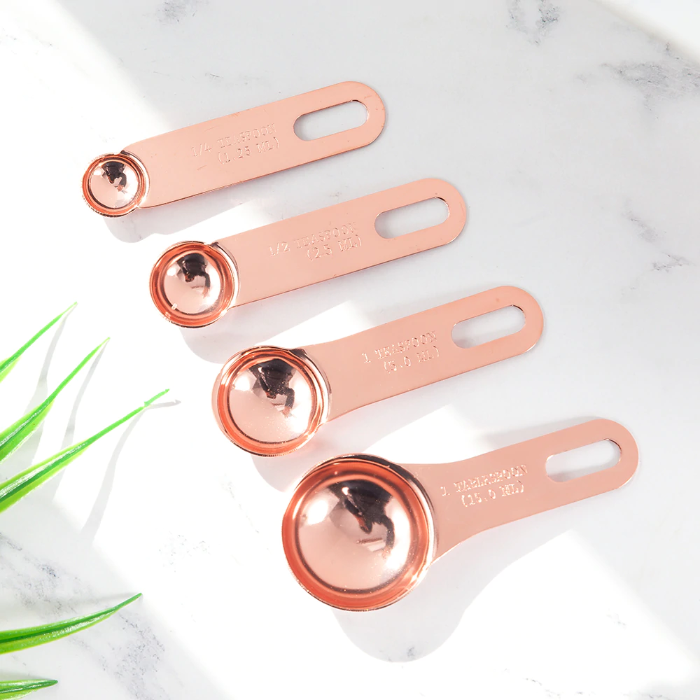 Precisely measure your ingredients with this beautiful set of rose gold measuring spoons.